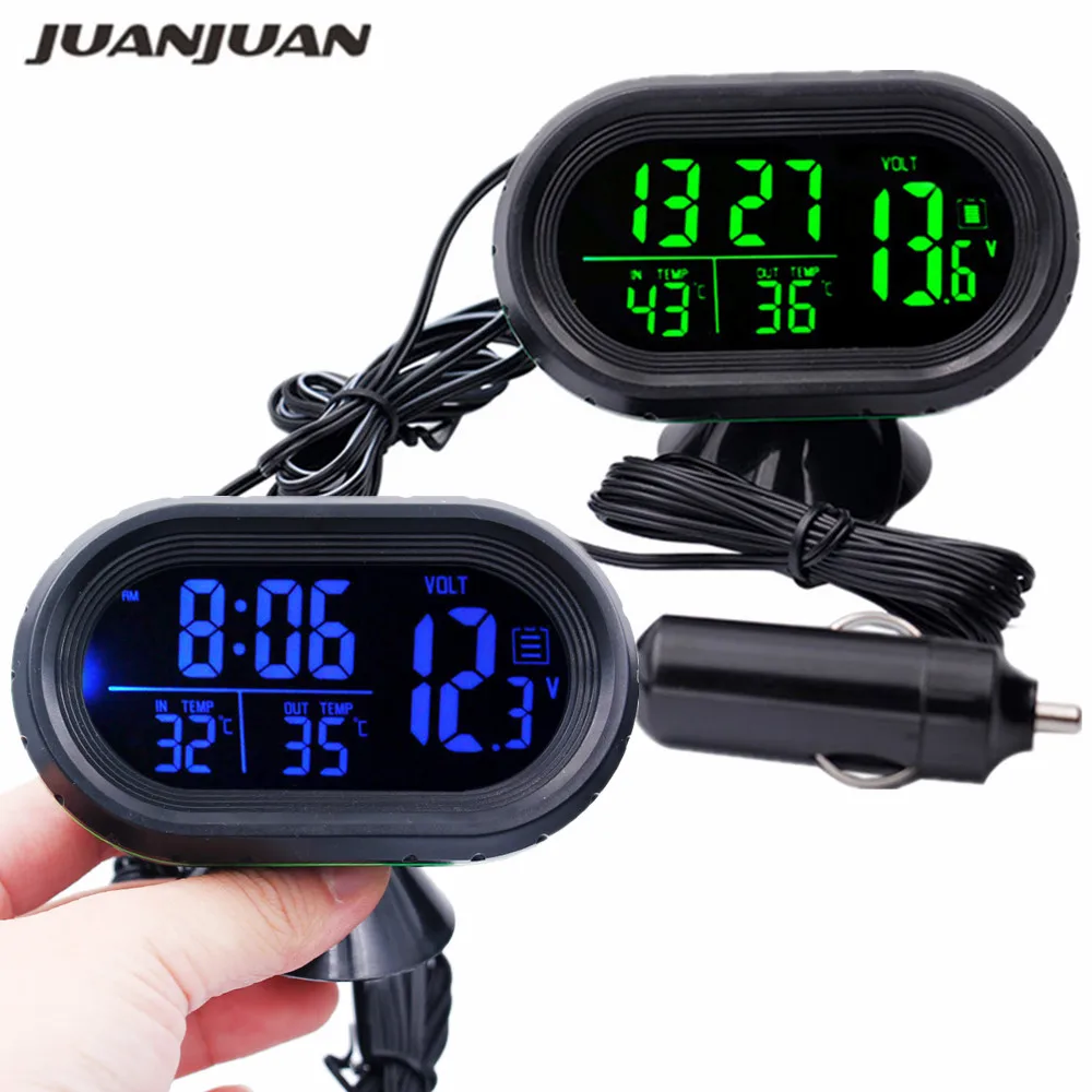 Цифровой автомобильный термометр 4 в 1, вольтметр, часы, дата, двойная температура, 12 В24 В, автоматический измеритель напряжения с оповещением о замерзании, скидка 30%