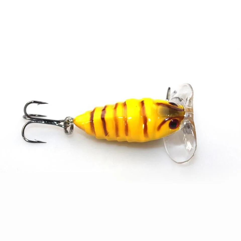 GoByGo 1 шт. 4 см, 4,2 г, Цикада, Поппер, рыболовная искусственная кожа, 3D глаза, жесткая плавающая приманка, крючок, снасть, Реалистичная воблер, приманка для рыбы