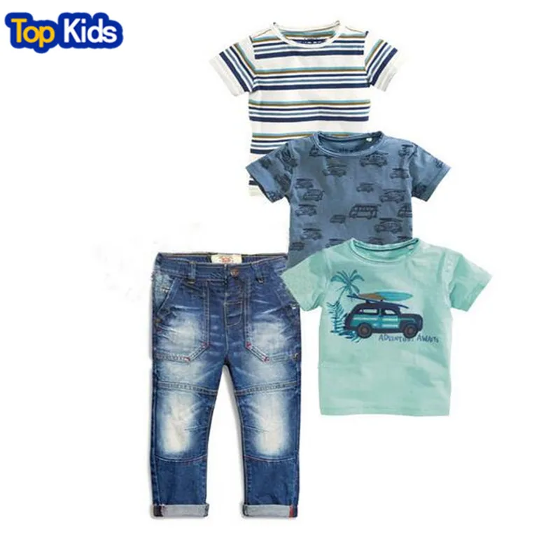 4 шт., Детский комплект из футболки, синей футболки, машины и джинсов