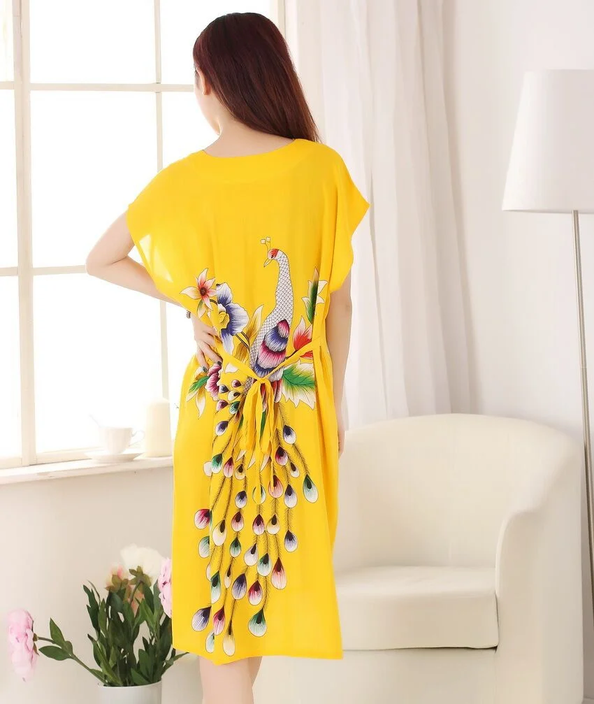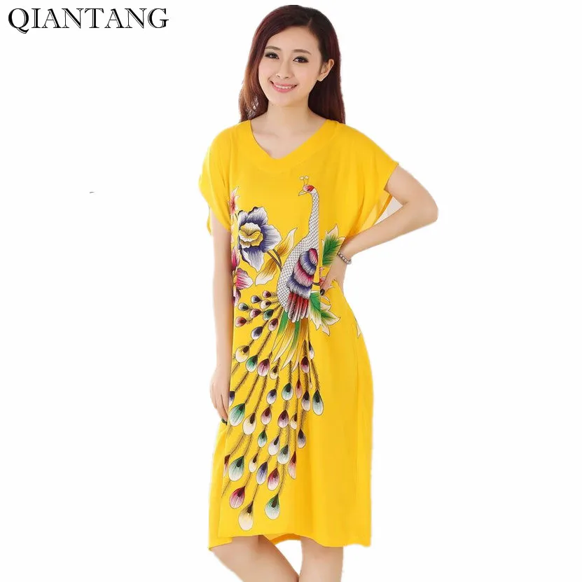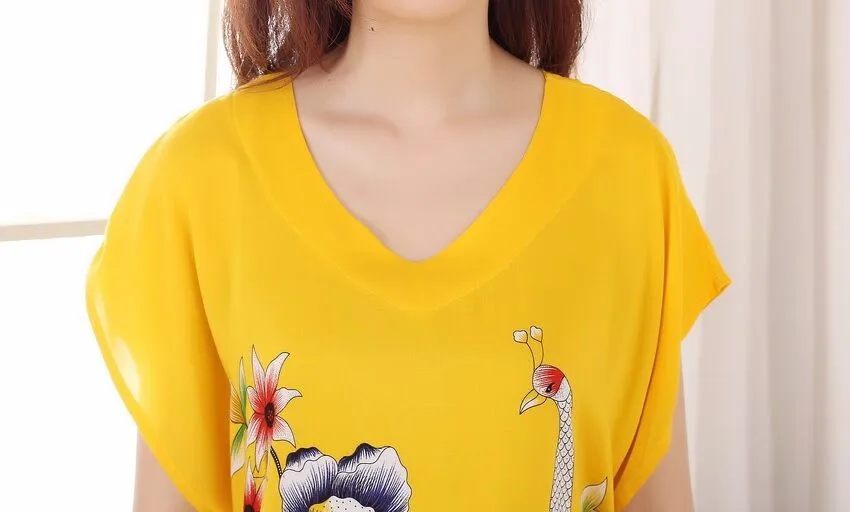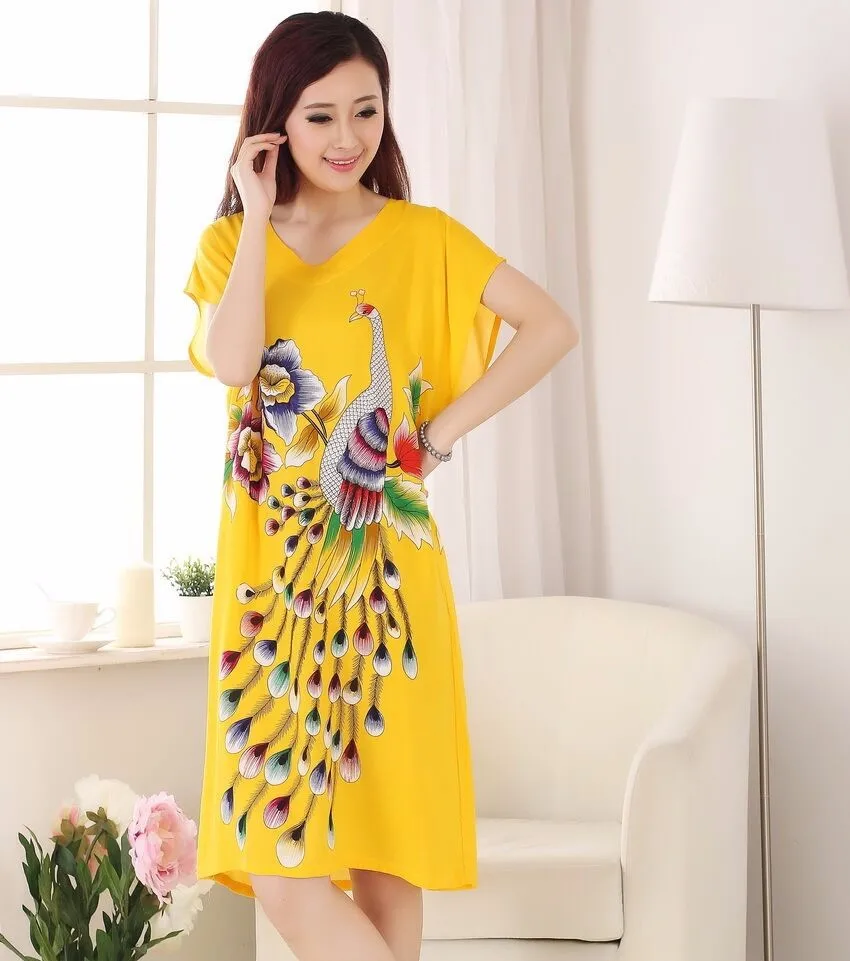 Ночная рубашка женская с V-образным вырезом, хлопковый Халат с принтом, ночная сорочка, ночная рубашка с принтом, один размер, на лето