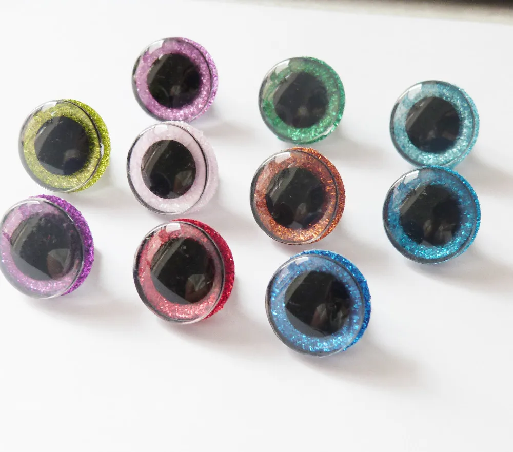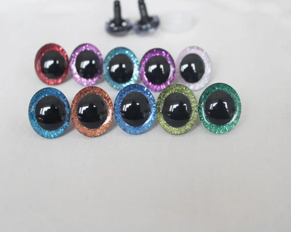 Прозрачные 3D блестящие глаза, пластиковые, безопасные игрушечные глаз, длинный стержень, блестящая ткань, шайба, 20 шт., 9-12-14-16-18- 20 -24-30-35 мм