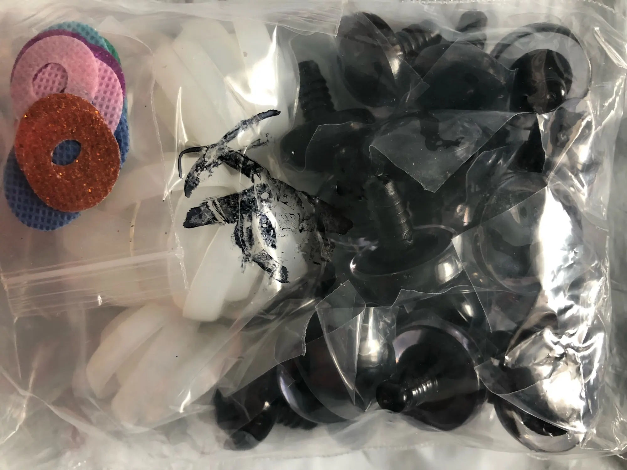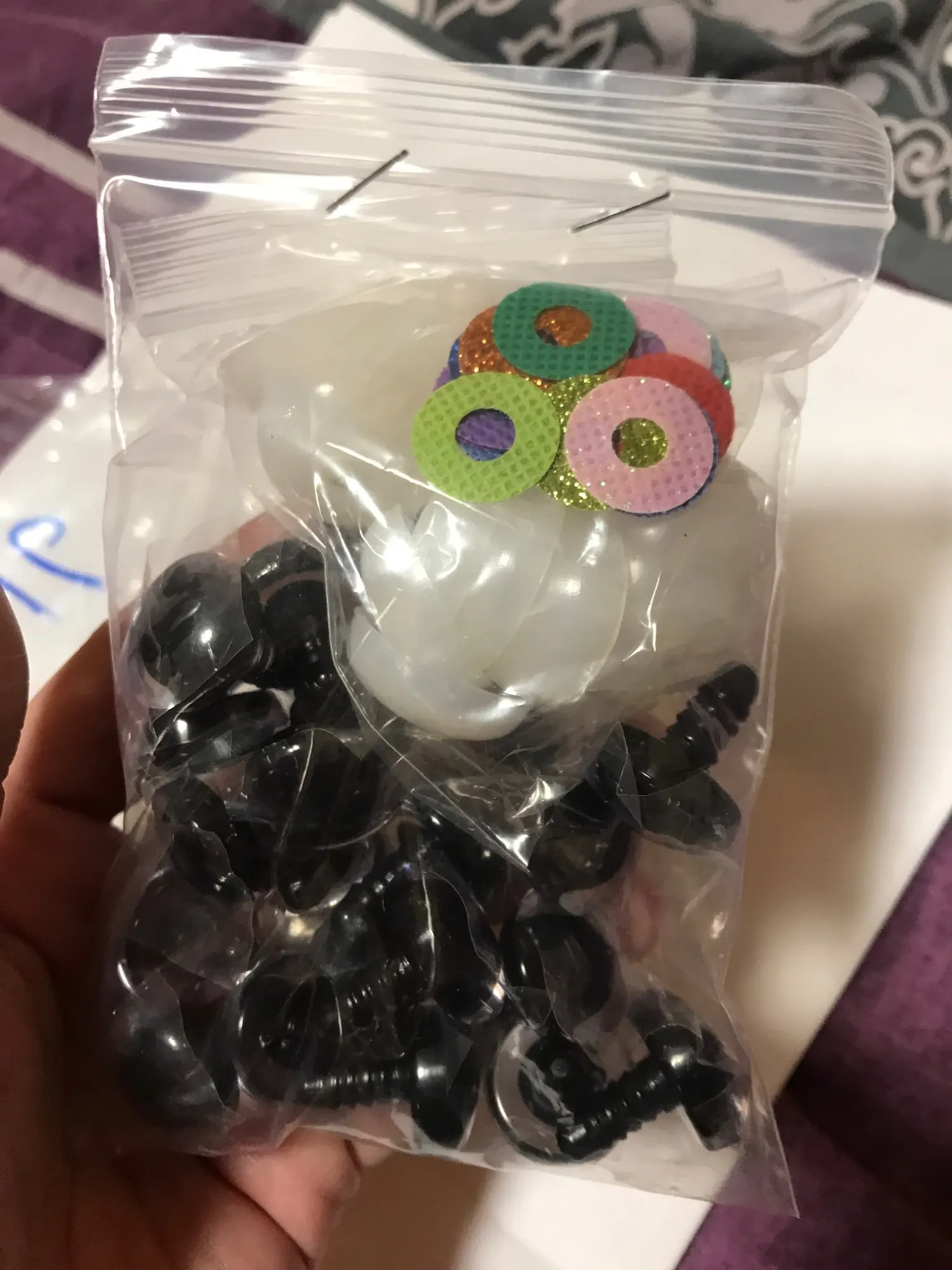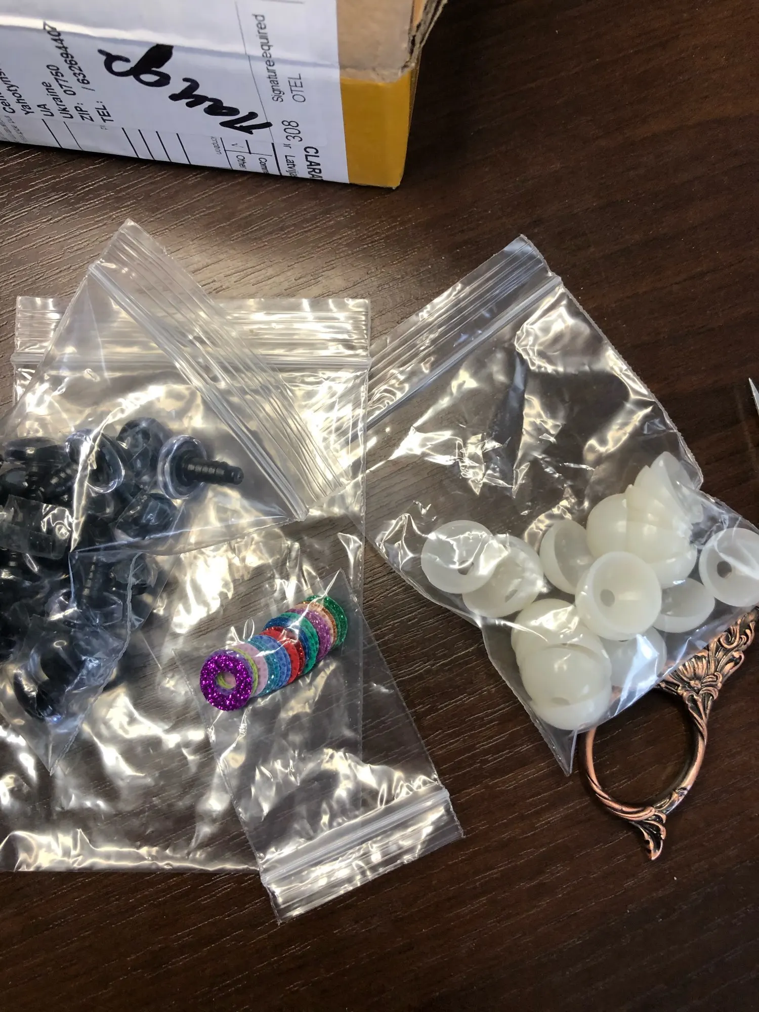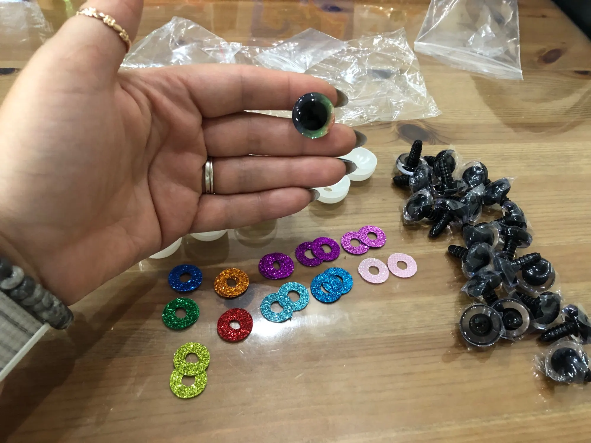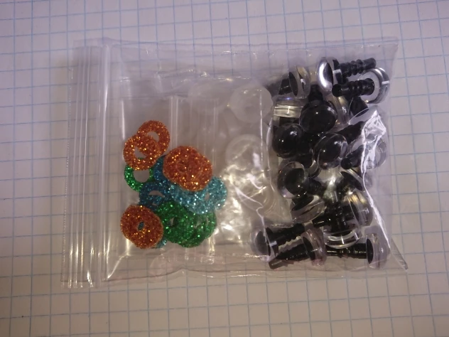 хорошие качественные глазки.каждый покрыт пленкой чтоб не царапался.количество соответствует.отслеживалось постоянно.
