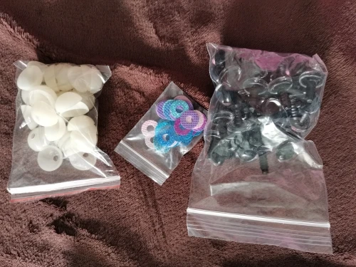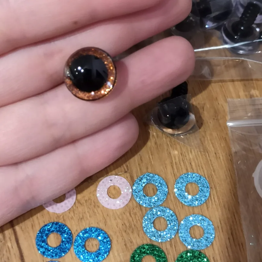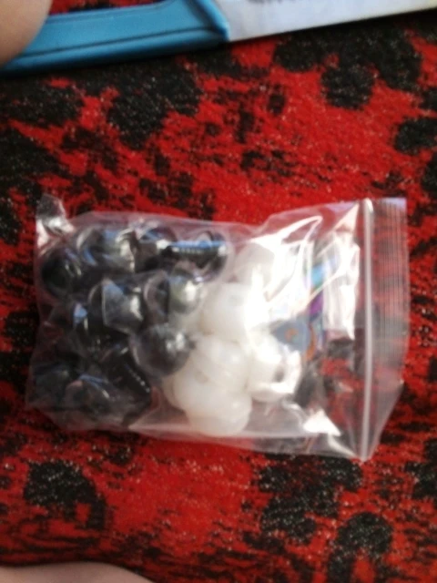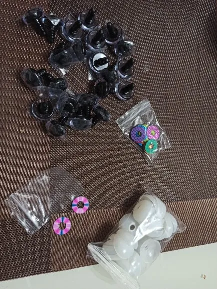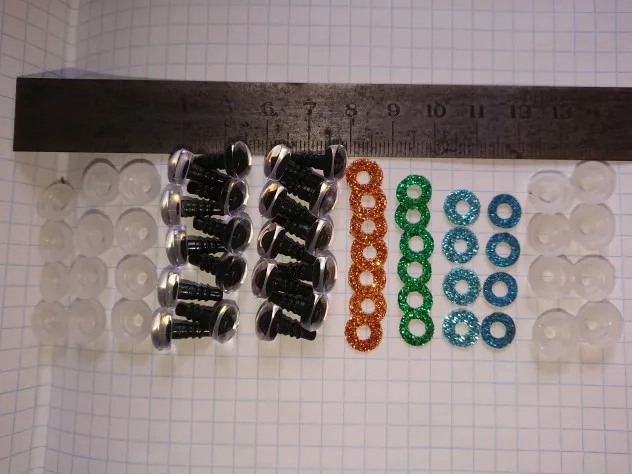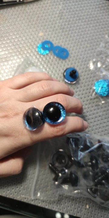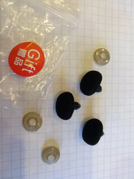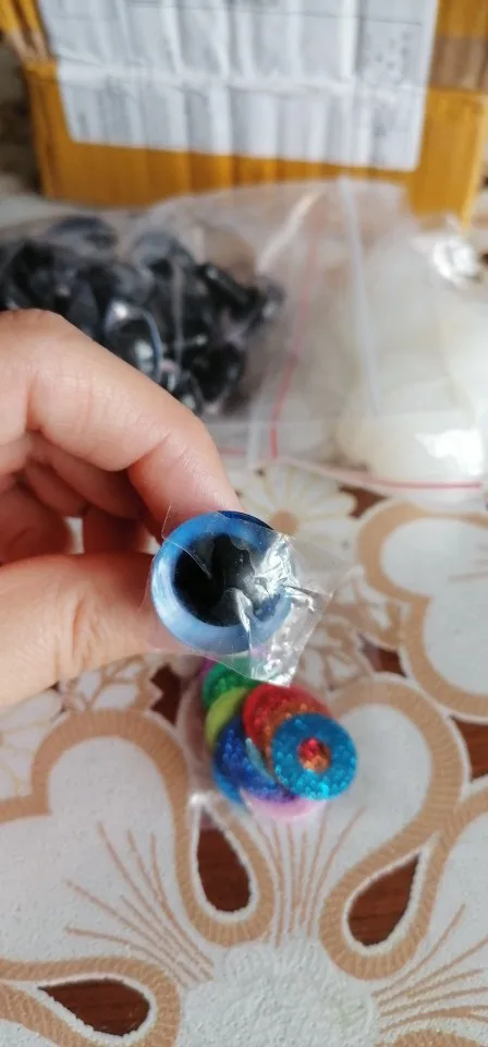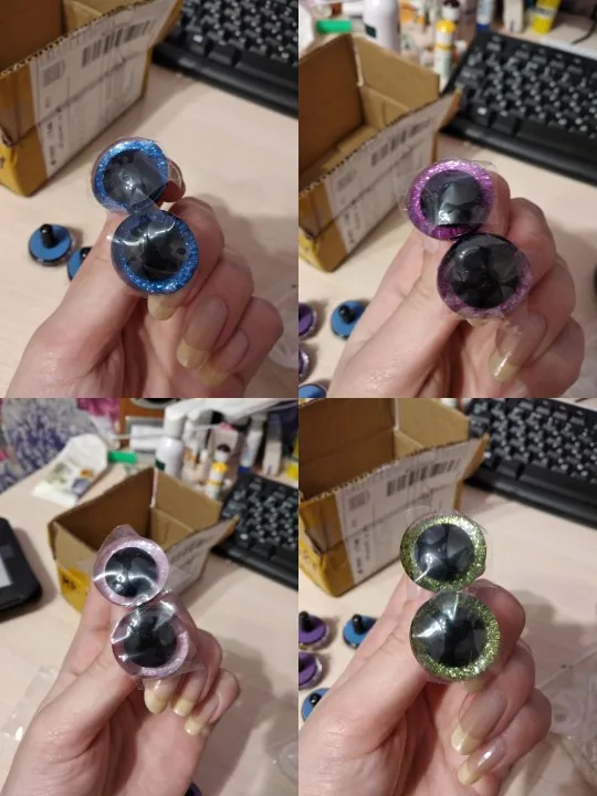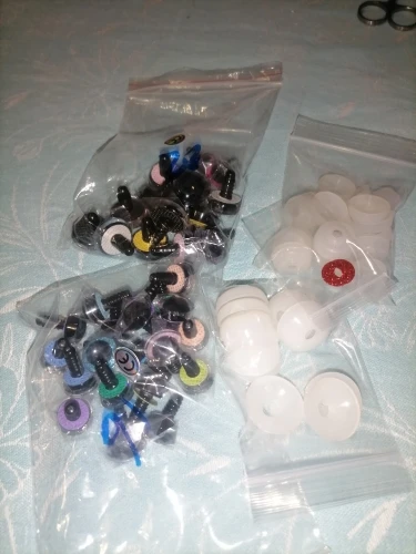 Самые идеальные глаза, которые я только видела! Огромное спасибо продавцу!!! В личных сообщениях я попросила прислать определенные цвета и в определенном количестве. Продавец всё выполнил, как я просила! Положил в подарок по одной паре глаз и радужек к каждому размеру глаз, которые я заказывала! Заглушку тоже столько же, сколько и глаз. 22 глаза, 22 радужки и 22 заглушки каждого размера. Плюс в подарок положил обалденные плюшевые черные овальные носики! Очень быстро выходит на связь! Очень быстро отправил! Довольно быстрая доставка. До Ростовской области 2 недели. Ещё раз большое спасибо продавцу! Качество глаз превосходное! Заказывала размеры 14 и 16. Каждый глазик в пленочке!