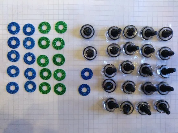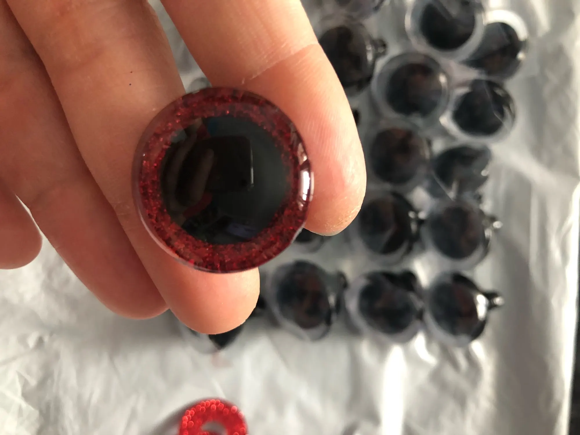 очень довольна качеством глазок!!!! С наших интернет-магазинов приходили царапанье глазки, а эти идеальные!! каждый в пленочке защитной, 22 штуки (получилось 1 пара глазок в подарок). В Украину пришли за 21 день укрпочтой. Однозначно буду ещё заказывать и всем рекомендую этот товар!