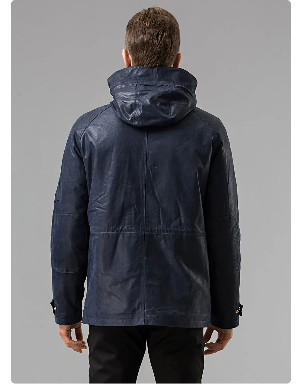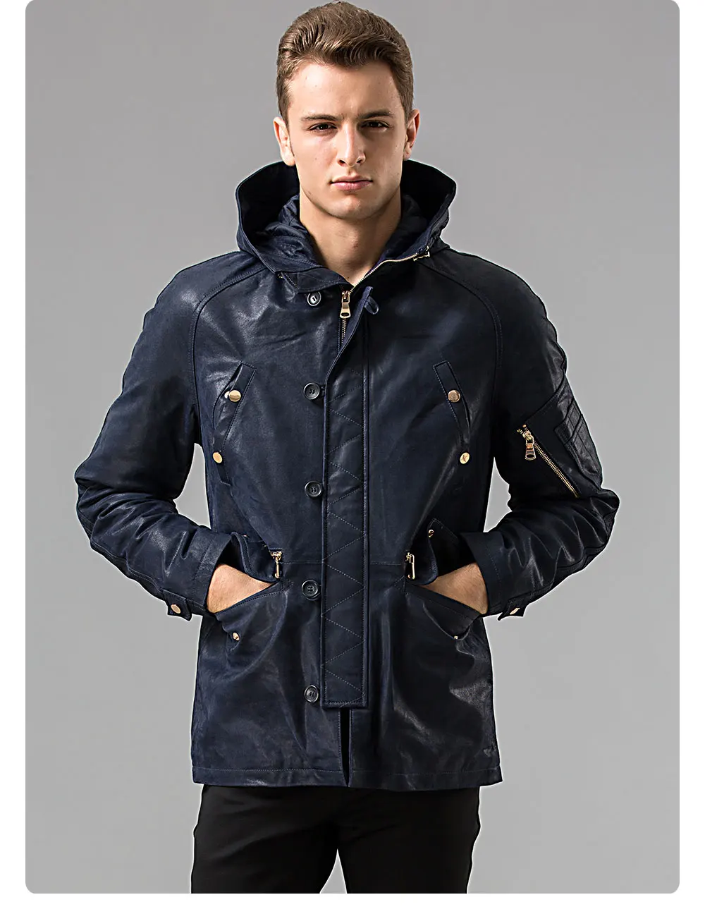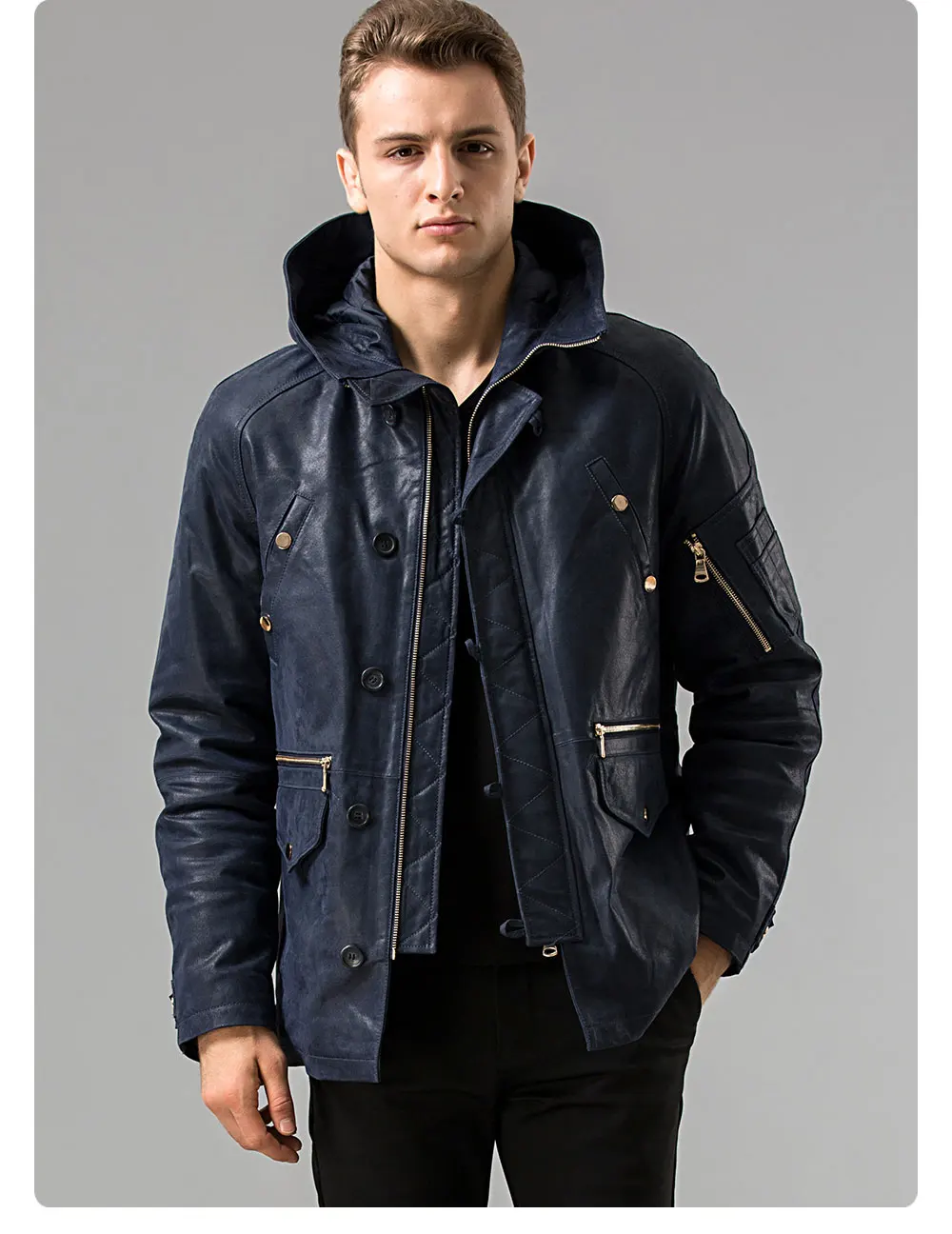 Kожаная куртка мужская из свиной шкуры с капюшоном, кожаный жакет с отстегивающейся шапкой, пальто из натуральной кожи размеров S-6XL для зимы