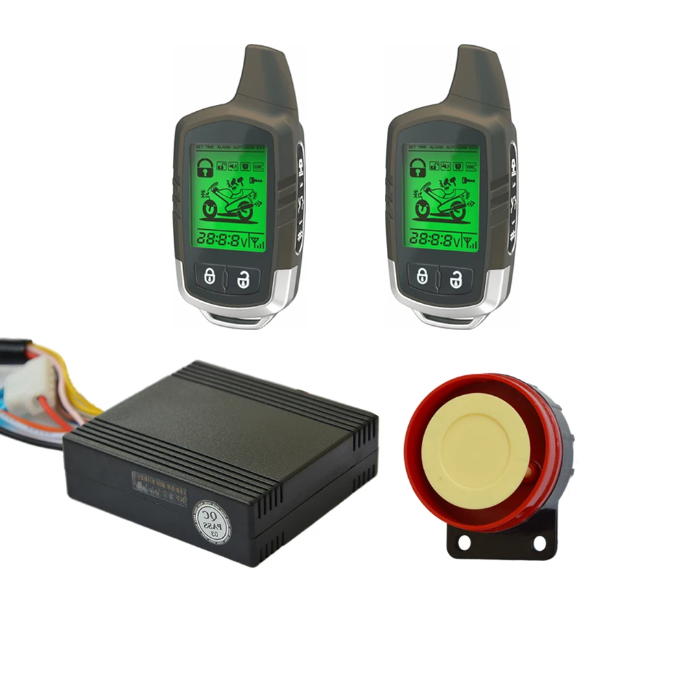 Новая энергосберегающая двухсторонняя сигнализация для мотоцикла со светодиодный ным индикатором состояния и 2 ЖК-пультами дистанционного управления