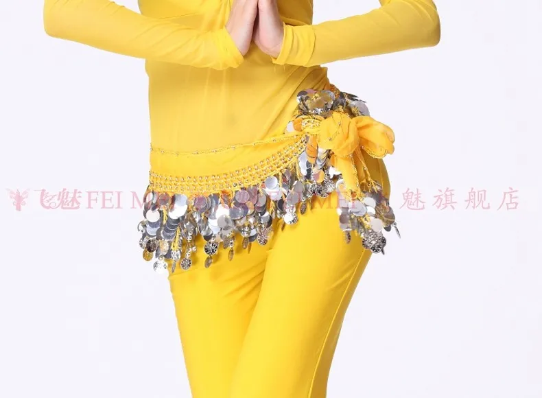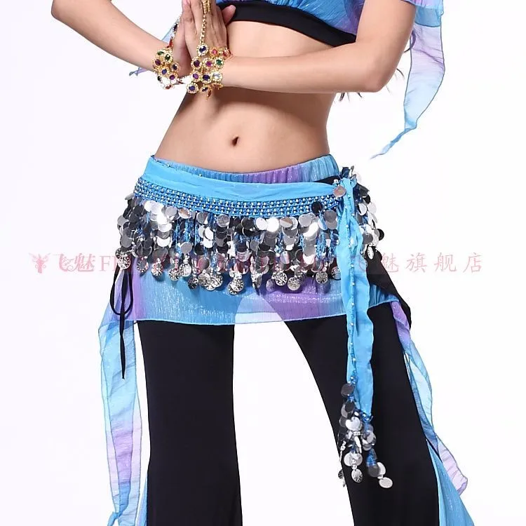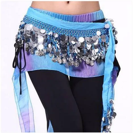 Костюмы для танца живота старший шифон серебряные монеты пояса для танца живота для женщин танец живота шарф бедра