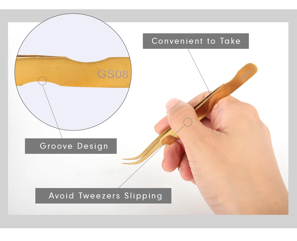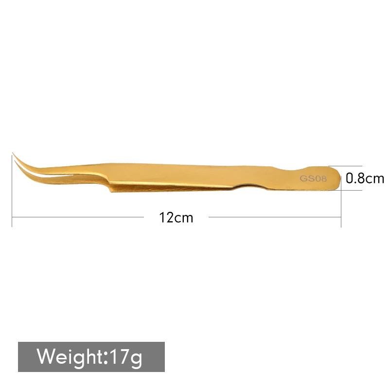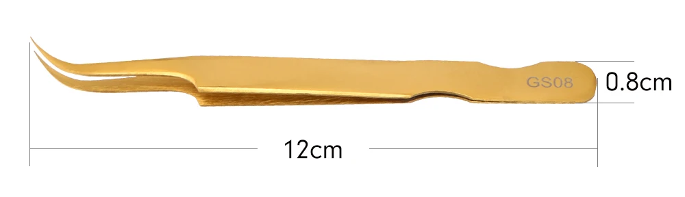 Примечание: 1 шт. = 13,59 долларов США Подходит для наращивания ресниц 3D-9D Преимущества: GS08 покрыта золотом с антифрикционным покрытием и высокой устойчивостью к коррозии. Кончик рассчитан на 125 °, что является лучшим углом для наращивания ресниц. Канавки помогут вам исправить ваш жест для наращивания ресниц. Прост в обращении, трудно выскользнуть из руки