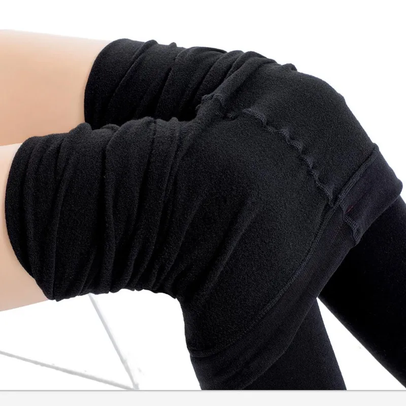 Колготки женские зимние теплые из размера плюс нейлона и микрофибры, с флисовой подкладкой
