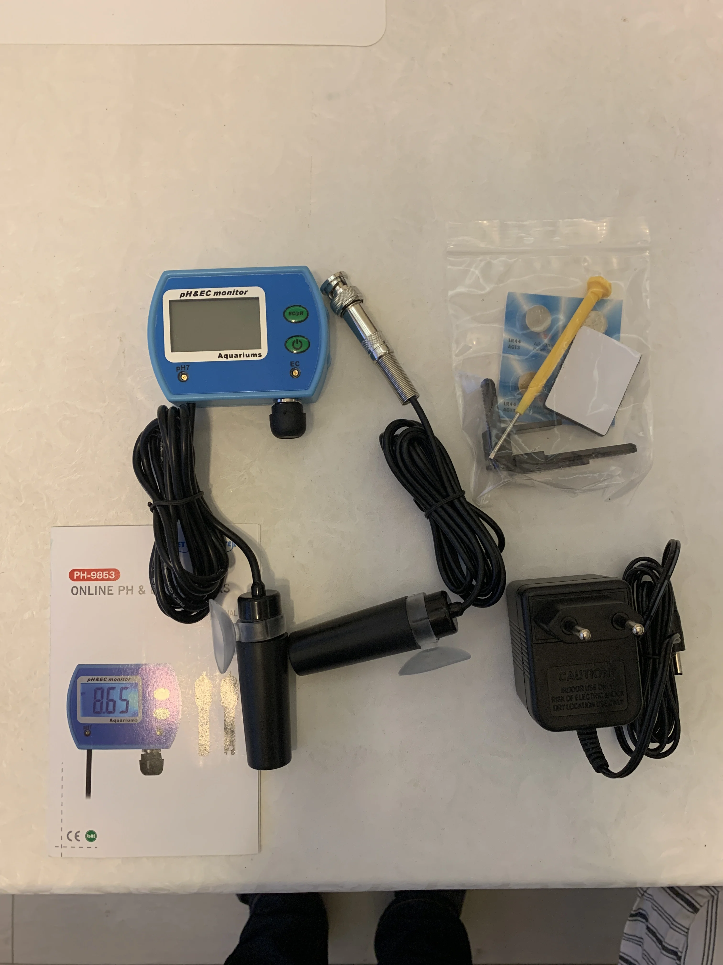 Был доставлен из Европы, но прибыл из Китая так долго, чтобы приехать, должно быть, самый быстрый способ доставки, чтобы компенсировать. Задержка для стабилизации и измерение pH EC не работает хорошо или хорошо калибруется.