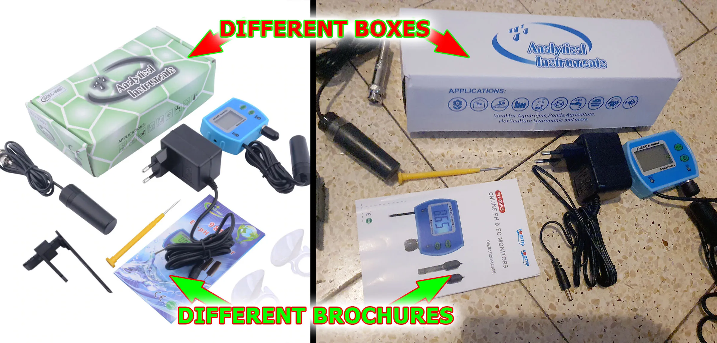работает не плохо, но есть некоторые отличия , нажав кнопку переключения ph и EC вместо ЕС показывает на дисплее MC , инструкция на английском, ну и самое плохое в том что не отколиброван и нет порошка или жидкости чем можно было бы его отколибровать , даже ЕС метр за 300-400р приходит отколиброваный и в полной рабочей готовности этот же дорогой аппарат не отколиброван и нет средств вместе с ним для калибровки это большой минус.