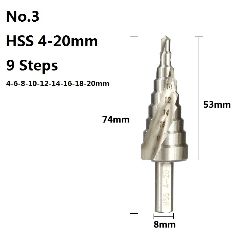 Сверло ступенчатое из быстрорежущей стали, 4-20 мм, 1 шт.