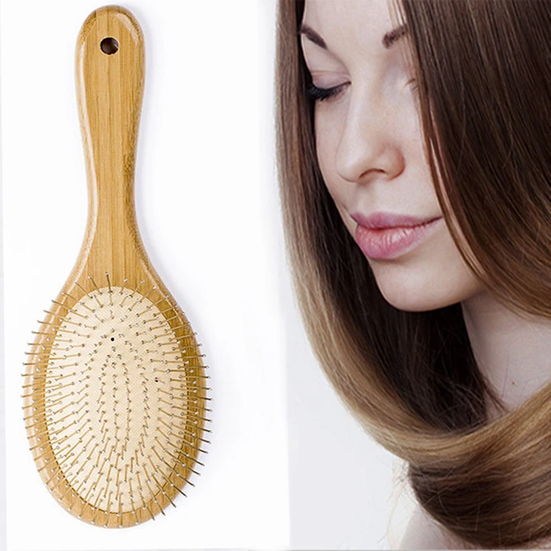 Щетка для волос Brainbow, 1 шт., Бамбуковая щетка для волос, стальная игла, массажная расческа для головы, Антистатическая натуральная воздушная подушка, щетки с ручкой