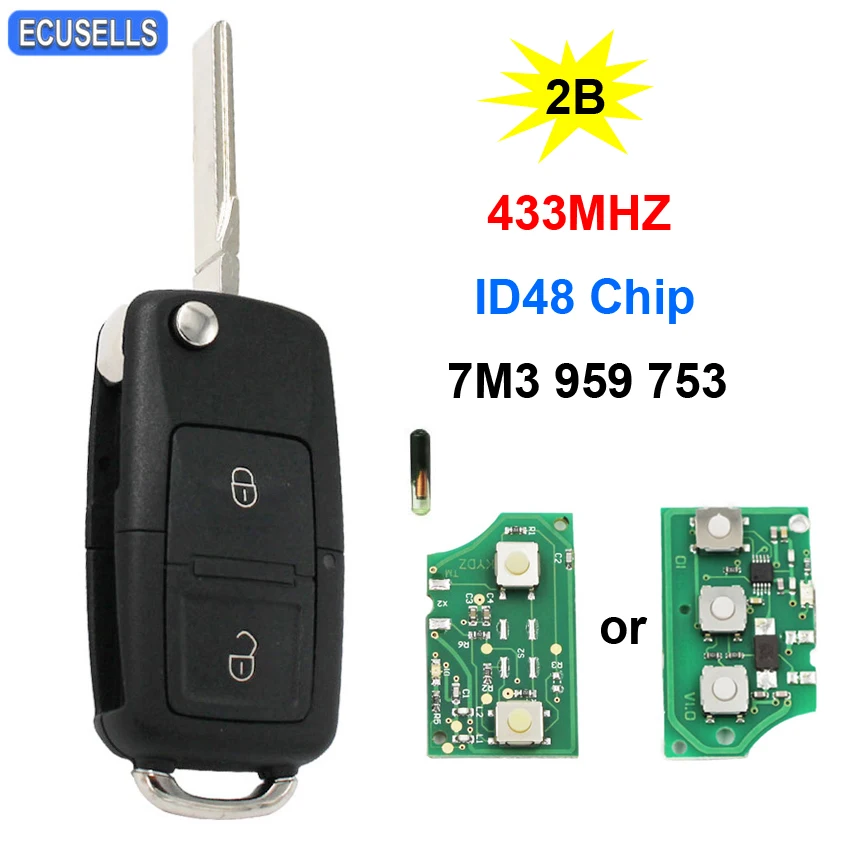 2-кнопочный складной дистанционный ключ 7M3 959 753 433 МГц 7M39597...