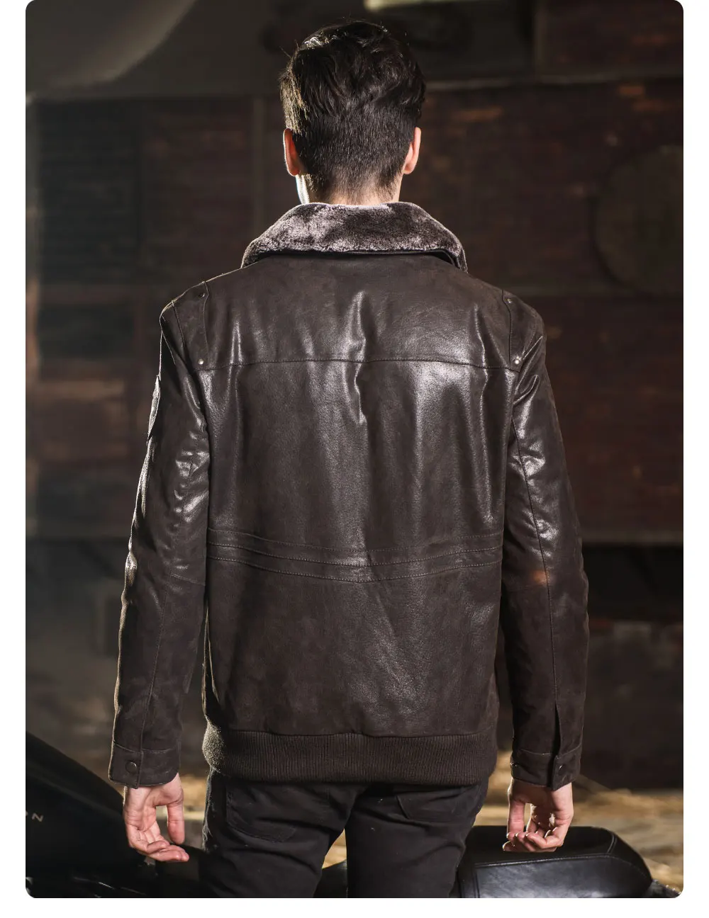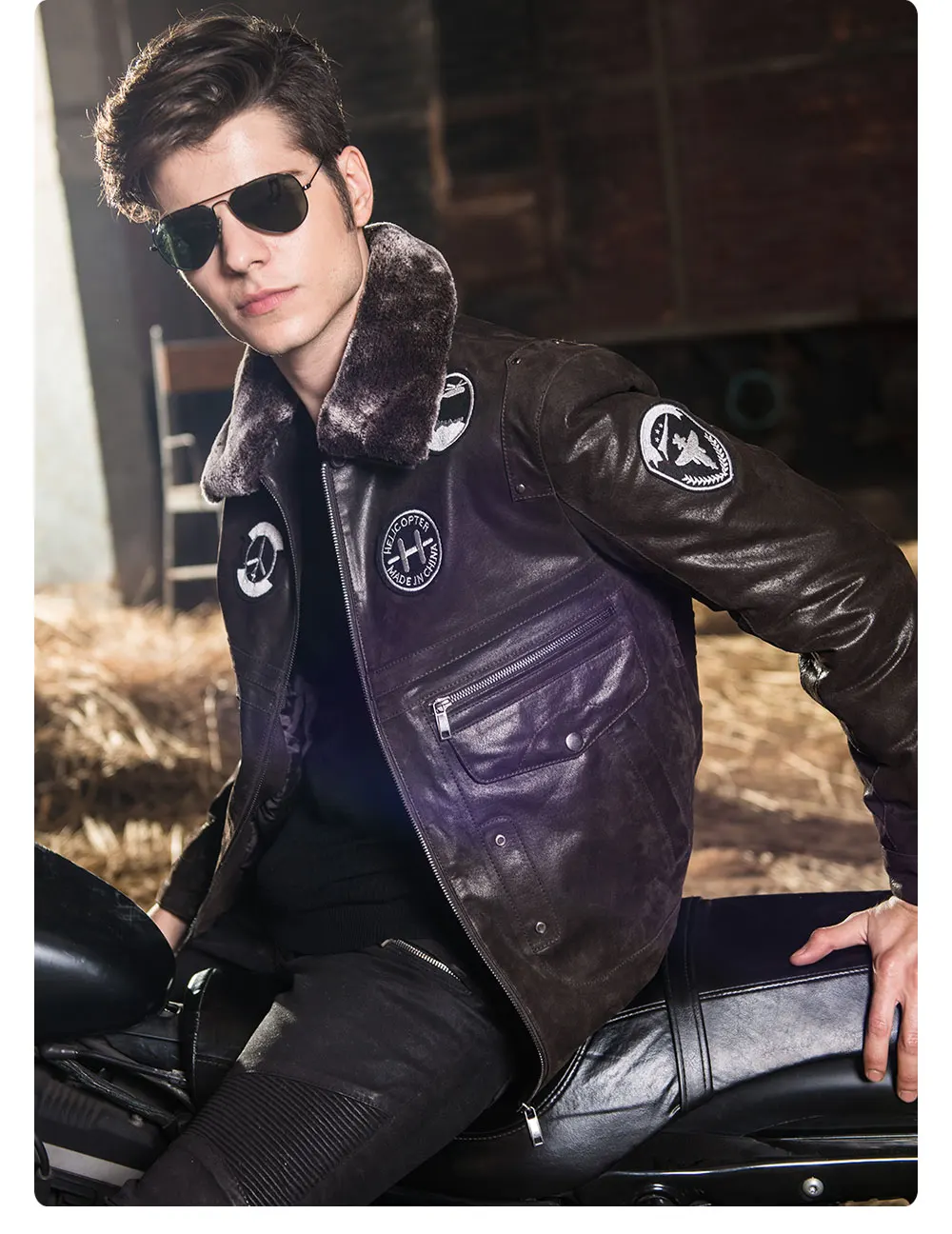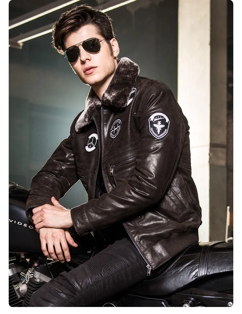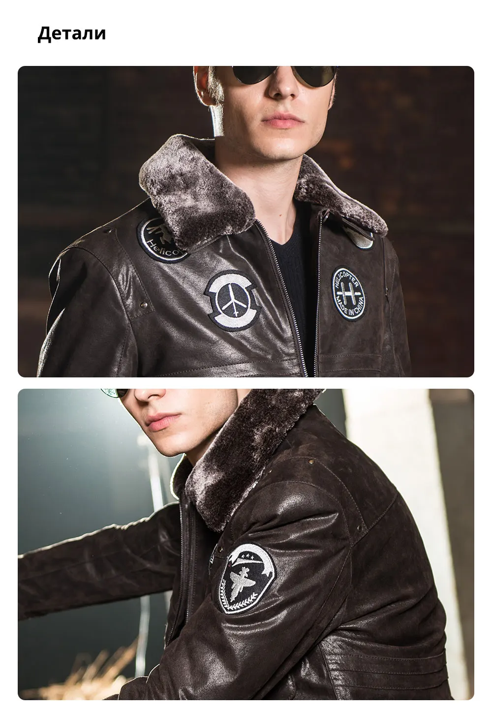 Kожаная куртка мужская с хлопковой подкладкой, кожаный жакет из свиной шкуры, теплые куртки в стиле ВВС, пальто из натуральной кожи, 2016