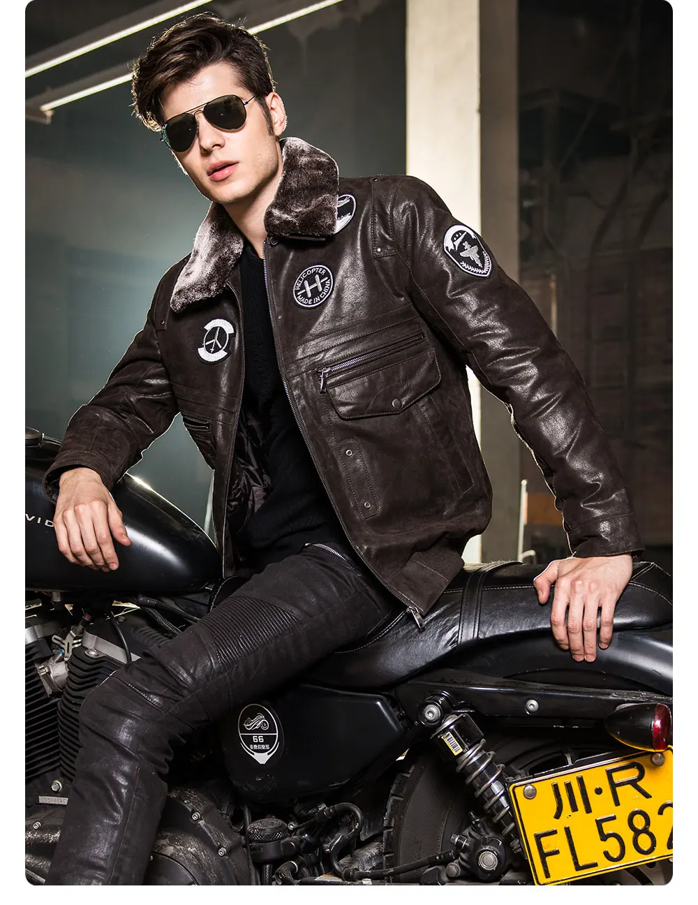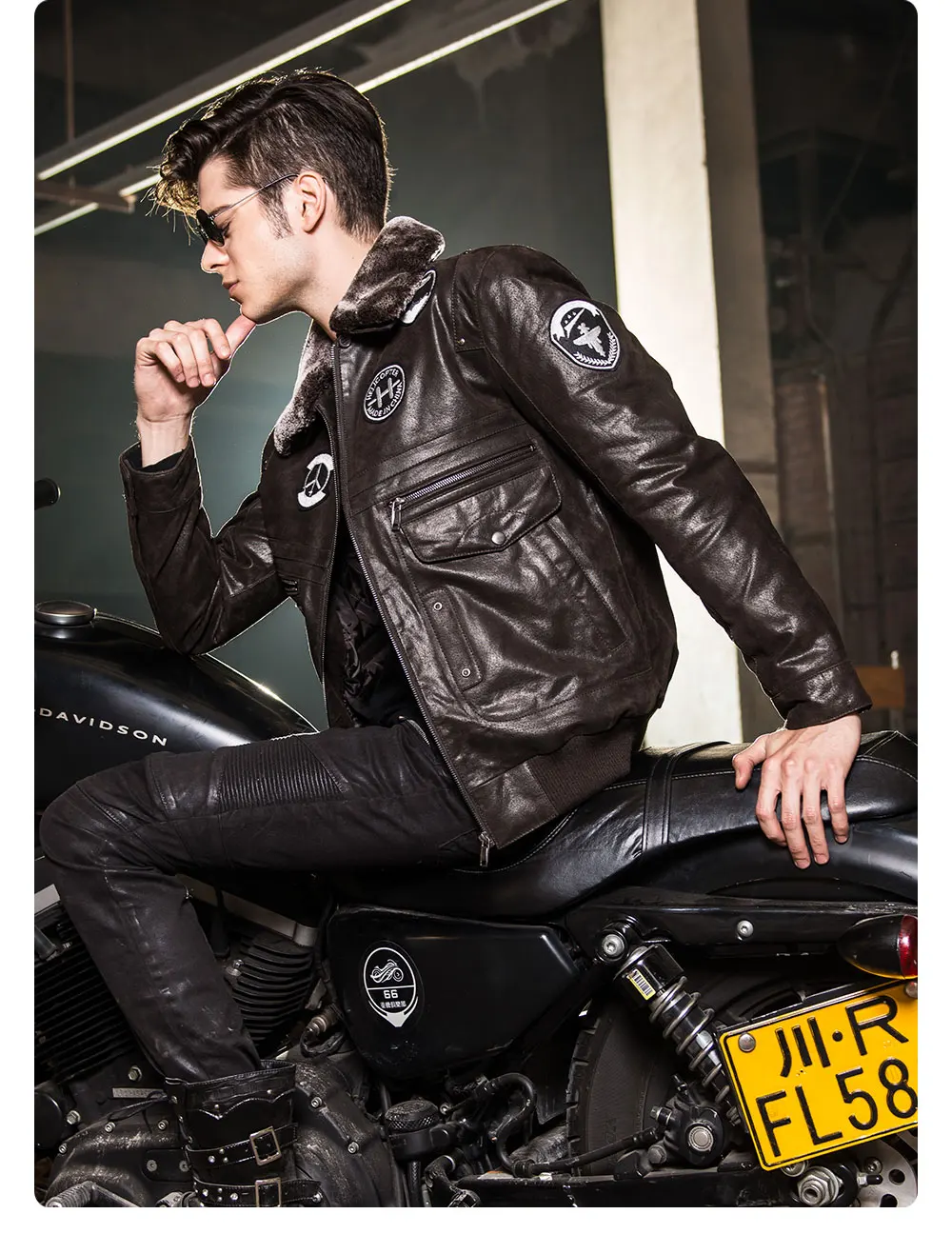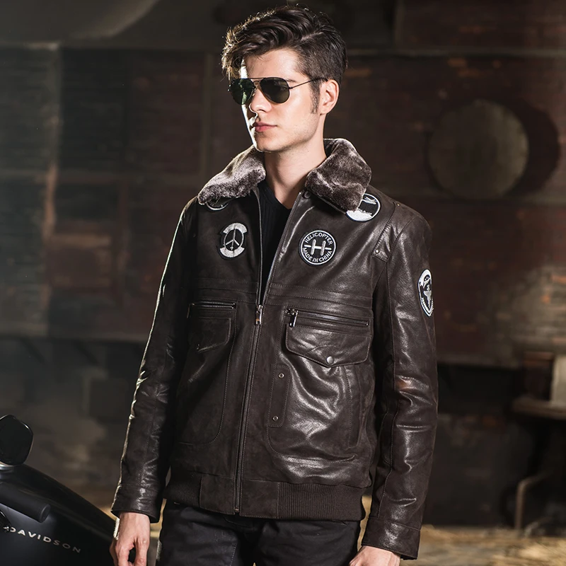 Kожаная куртка мужская с хлопковой подкладкой, кожаный жакет из свиной шкуры, теплые куртки в стиле ВВС, пальто из натуральной кожи, 2016