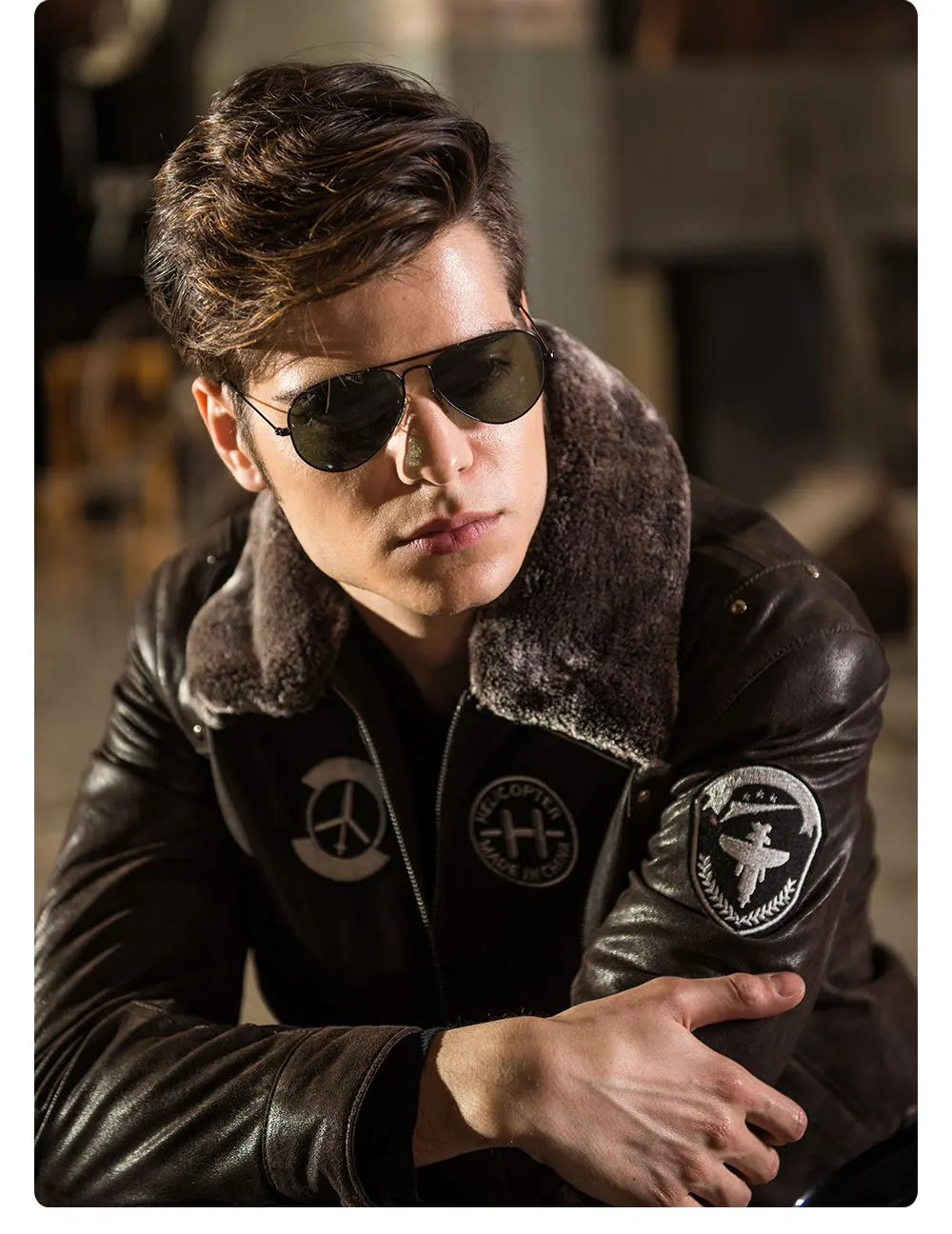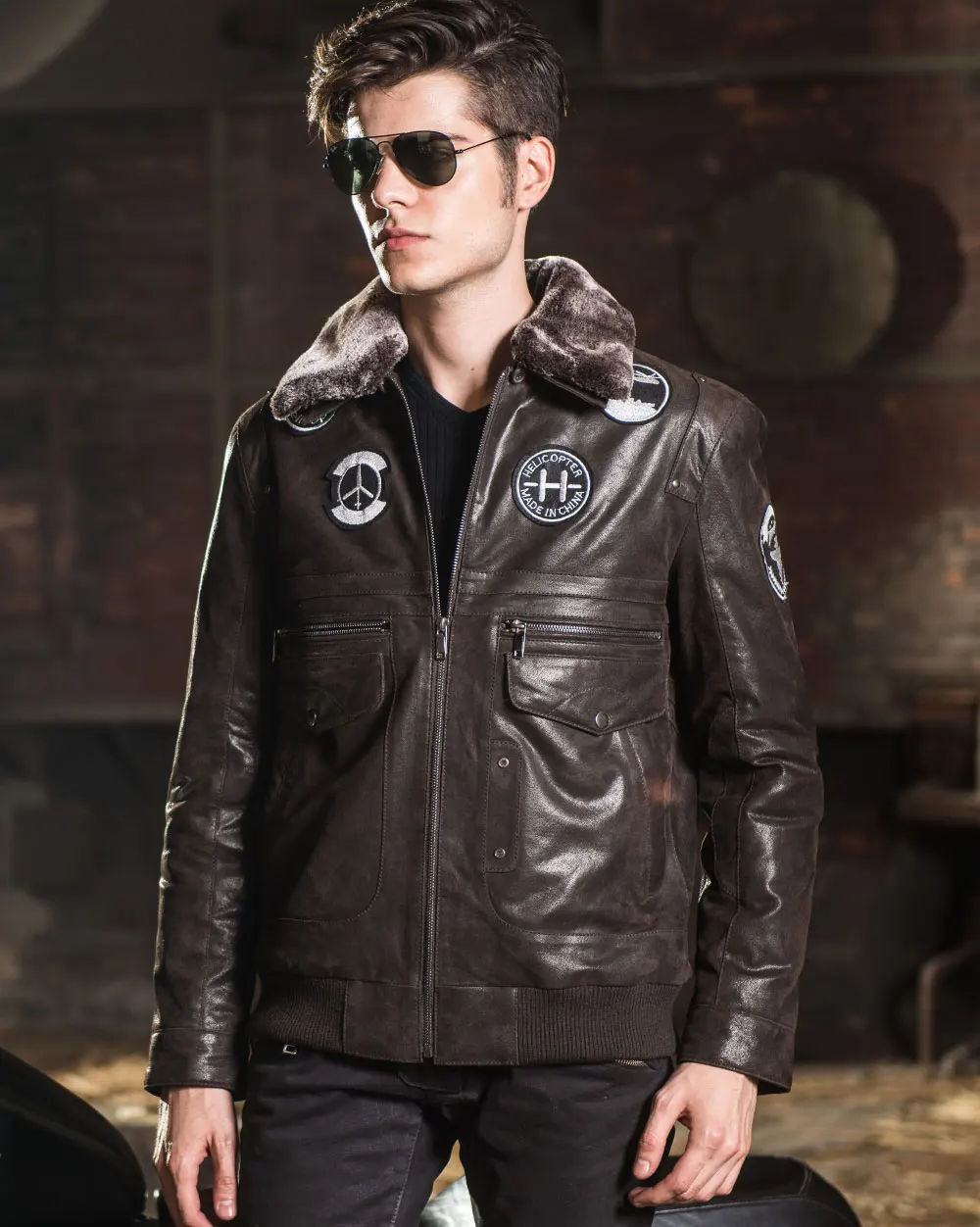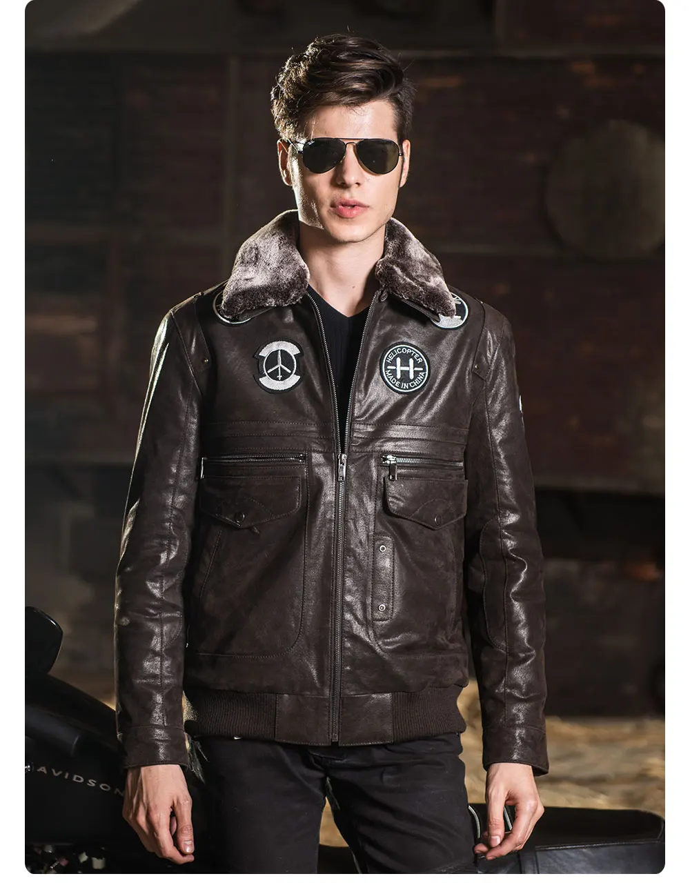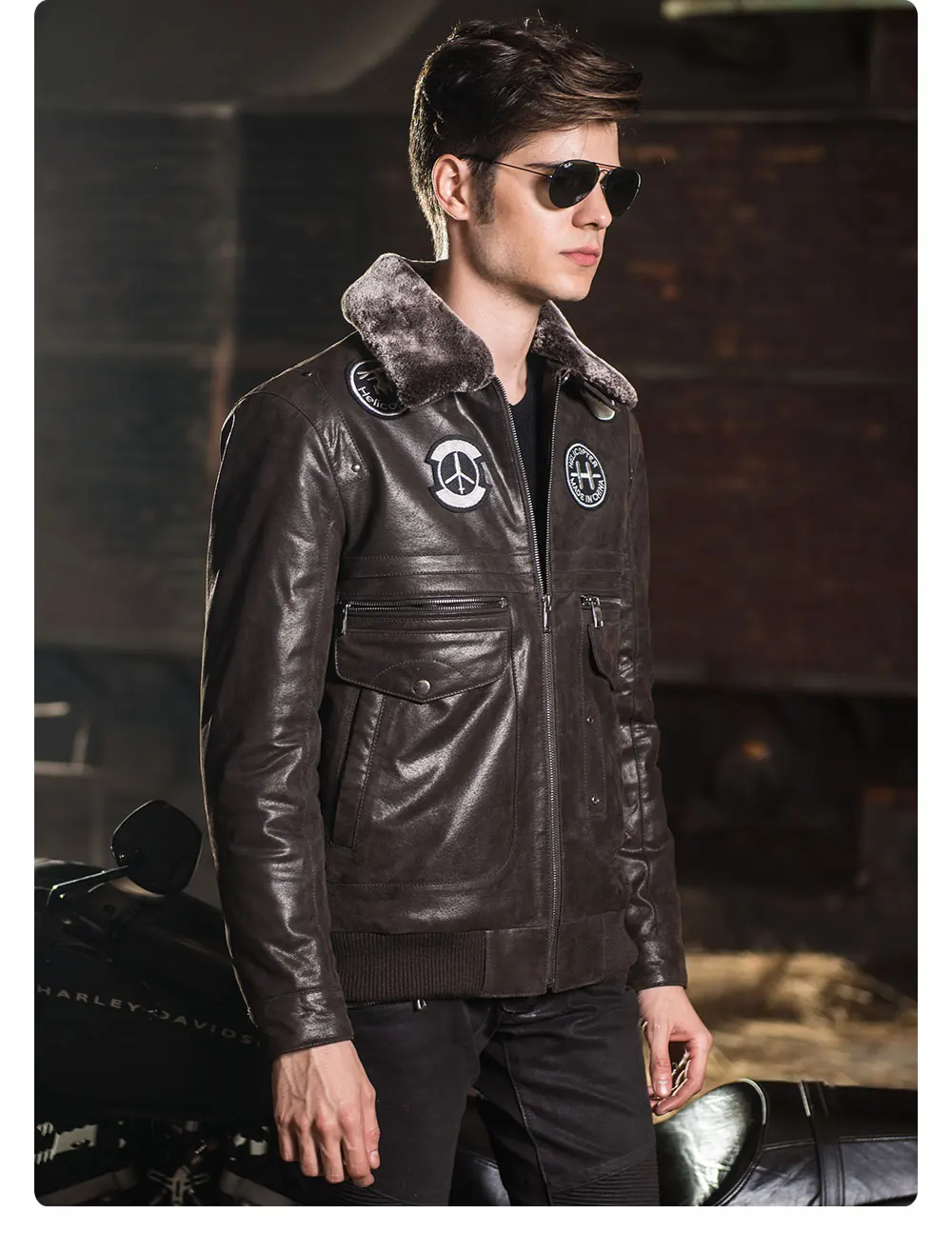 Kожаная куртка мужская с хлопковой подкладкой, кожаный жакет из свиной шкуры, теплые куртки в стиле ВВС, пальто из натуральной кожи, 2016