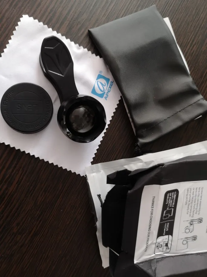 Прекрасное дополнение к камере смартфона. В комплекте и салфетка, и мешочек с завязками, чтоб взять с собой. Закрывается крышкой, чтоб не поцарапать линзу. Мягкая основа, которая ложится на экран телефона. Заказ пришёл быстро. Я довольна и фотографиями и линзой. С продавцом не общалась.