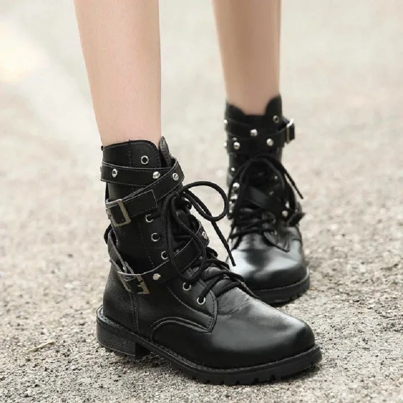 Хит продаж модные женские байкерские сапоги с винтажными заклепками берцы обувь в стиле панк готический стиль женские байкерские осенние кожаные ботильоны