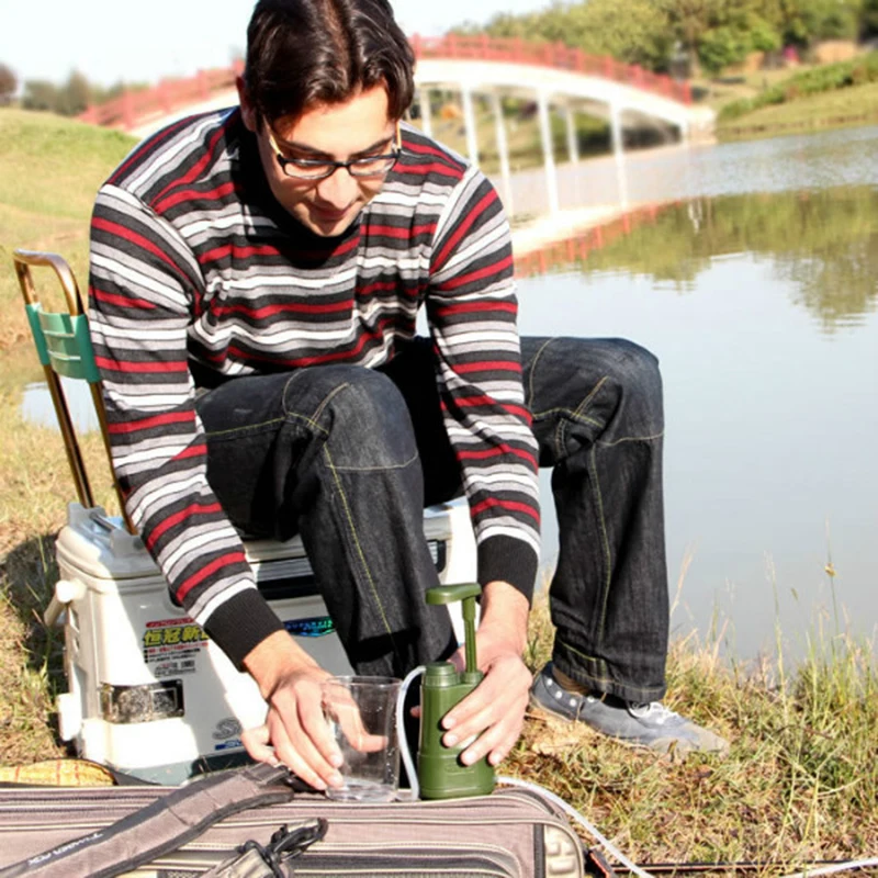 1. Поместите впускной шланг в проточный источник пресной воды (река, озеро и дождь и т. Д.). Используйте поплавок, чтобы держать предфильтр от дна и вдали от осадка.2. Поместите выходной шланг в прилагаемую чашку или контейнер для чистой воды.3. Начните накачивать, перемещая ручку вверх и вниз.
