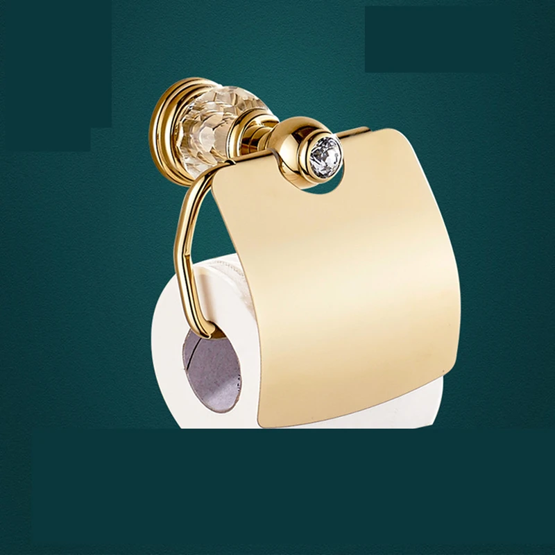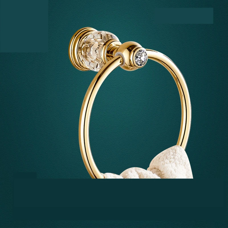Европейский Золотой набор аксессуаров для ванной комнаты, античные хрустальные аксессуары для ванной комнаты, настенная полированная латунная отделка, Товары для ванной rw0