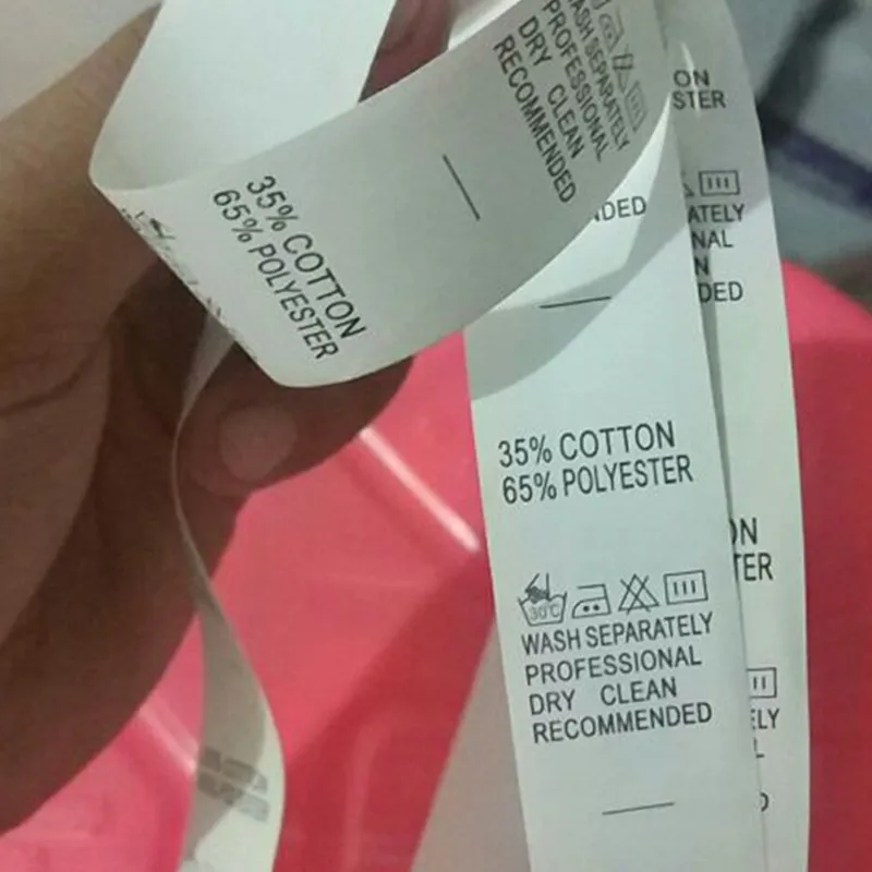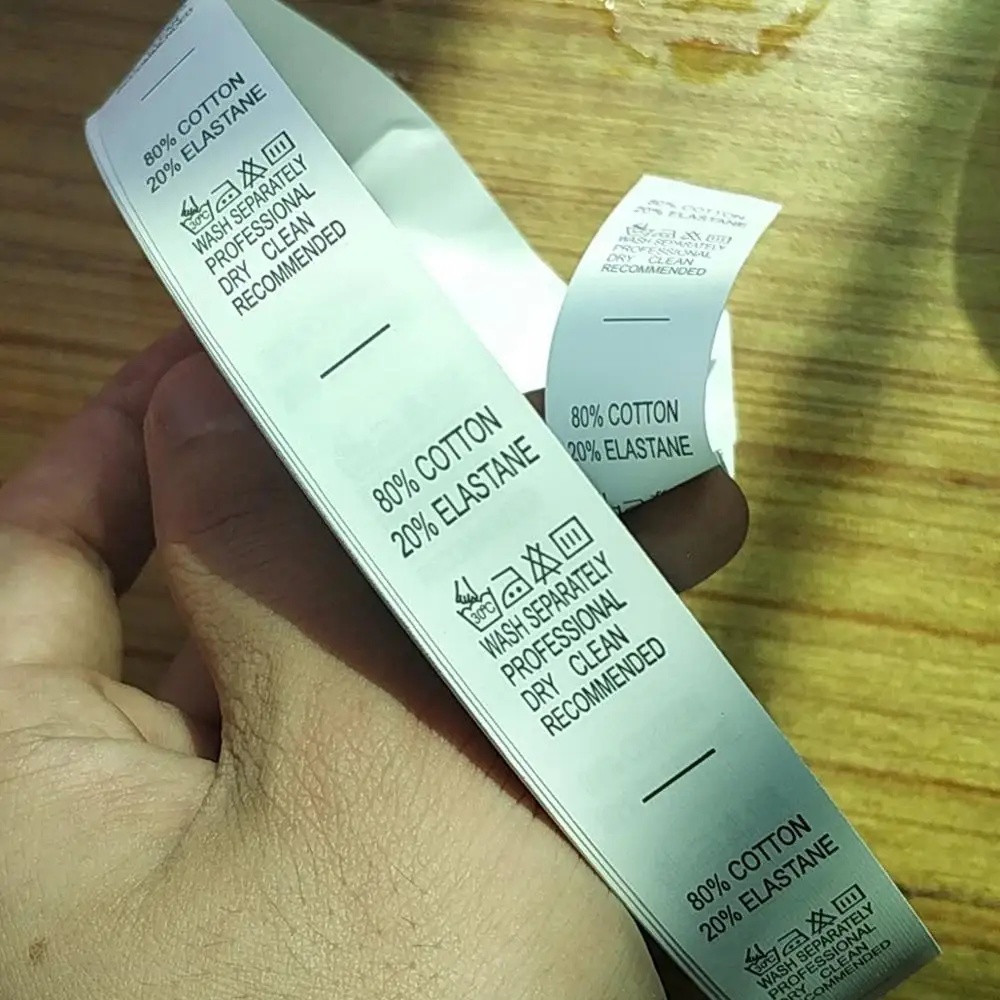 Белая этикетка для ухода, нейлоновая лента с покрытием, этикетка для стирки с принтом, хлопокполиэстерэластанЛенспандексшелкшерсть, 200 шт.