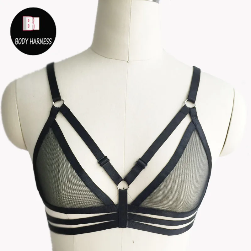 Женское черное обвязка для тела, женский бюстгальтер с бретельками, сексуальное готическое бондажное белье, Фетиш-одежда в стиле Харадзюку, женское нижнее белье