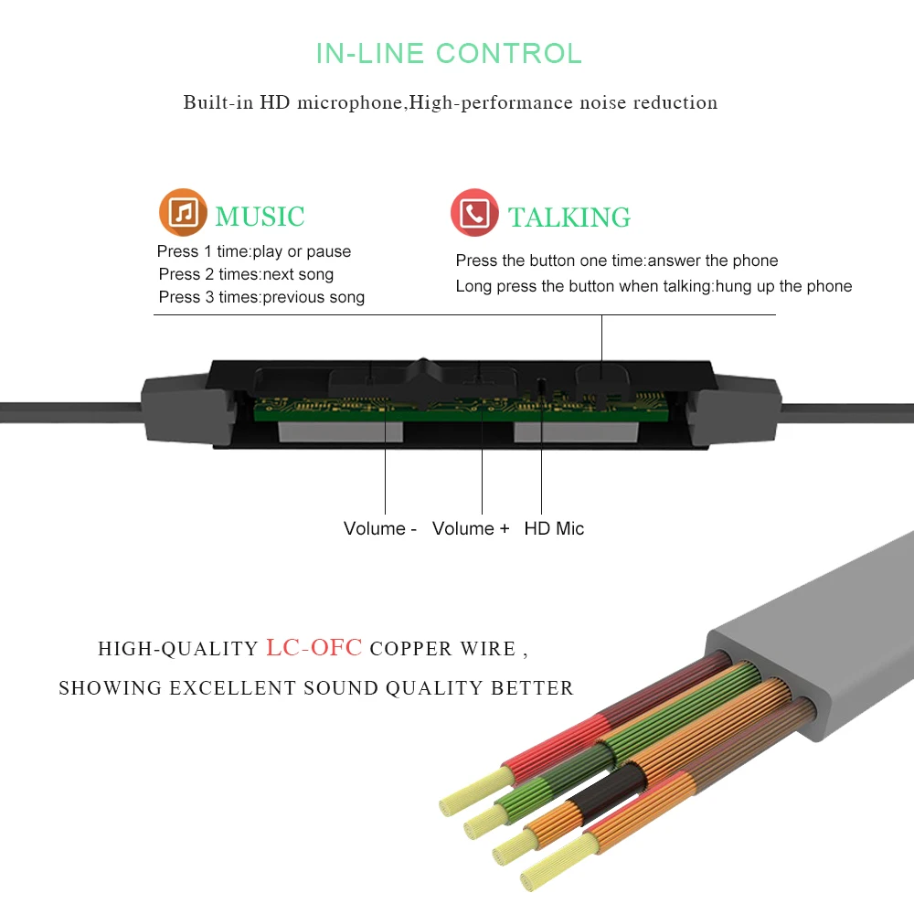 Спортивные наушники с микрофоном, Hi-Fi наушники-вкладыши с штекером 3,5 мм, гарнитура с крючком, шумоподавляющие наушники для Meizu, Xiaomi, Huawei, iPhone