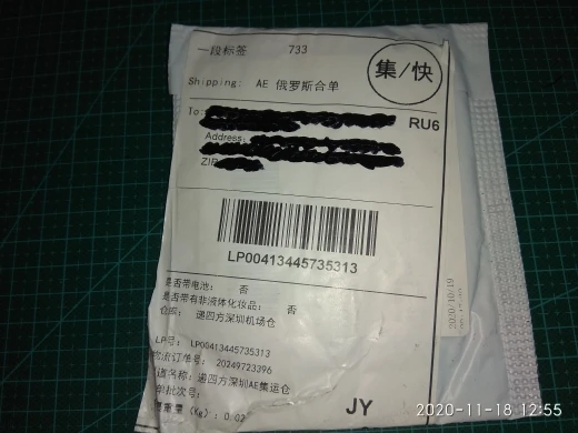 Страна: RU Доставка: Cainiao Super Economy 29.09.2020