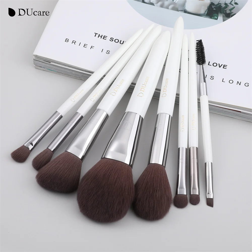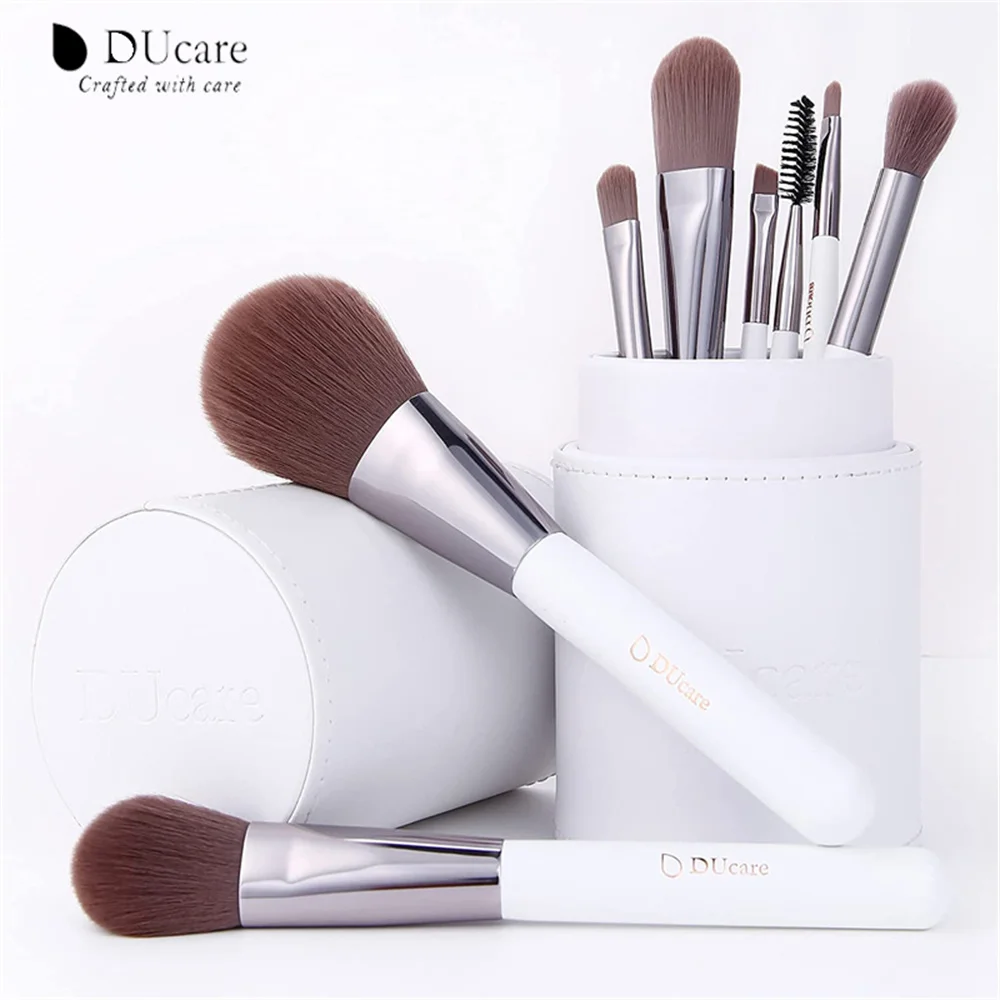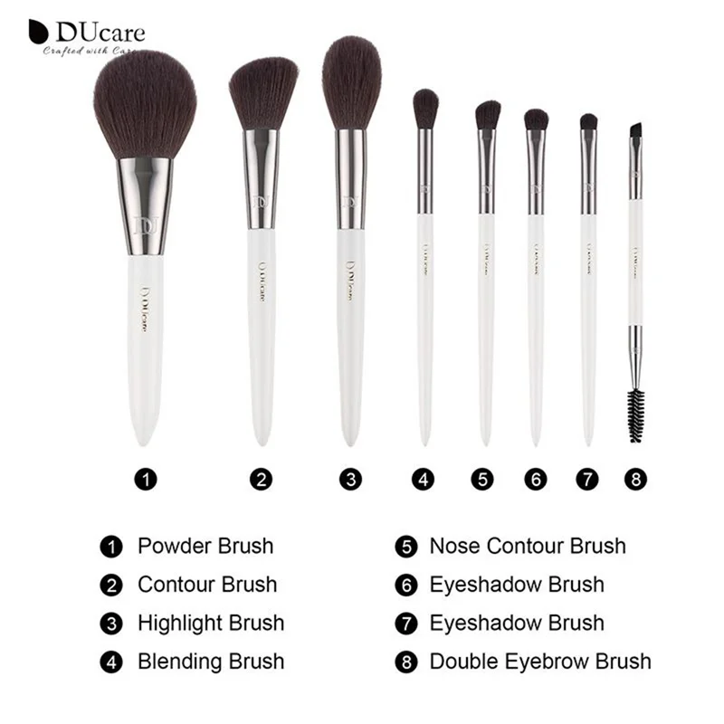 DUcare кисти для макияжа с держателем 8 шт Германия BASF волокна волос 5,0 быстросохнущая основа для макияжа пудра для глаз набор кистей для смешивания бровей