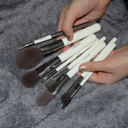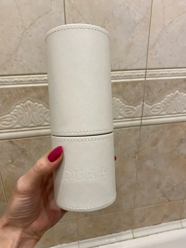 Ой, девочки, эти кисти от #DUcare меня просто покорили, обворожили и очаровали! Невероятно эстетично, начиная от упаковки, заканчивая самими кисточками, безупречными в каждой своей ворсинке! В набор входит 8 кистей (для румян, пудры, несколько для теней, консилера, бровей, губ). Ворс у кисточек синтетический, ультратонкий и неимоверно мягкий. Раньше я пользовалась кистями только с натуральным ворсом, но не так давно перешла на синтетический ворс, так как в современных кистях он ничем не уступает натуральному, растушевывает идеально а служит намного дольше натурального. Кисти плотно набиты, не лезут совершенно, я даже пыталась подергать)) Ручки кисточек деревянные, окрашены в белый матовый цвет. Очень удобные. Отдельная моя любовь - это тубус из PU-кожи для хранения кистей. Это очень красиво и функционально одновременно!