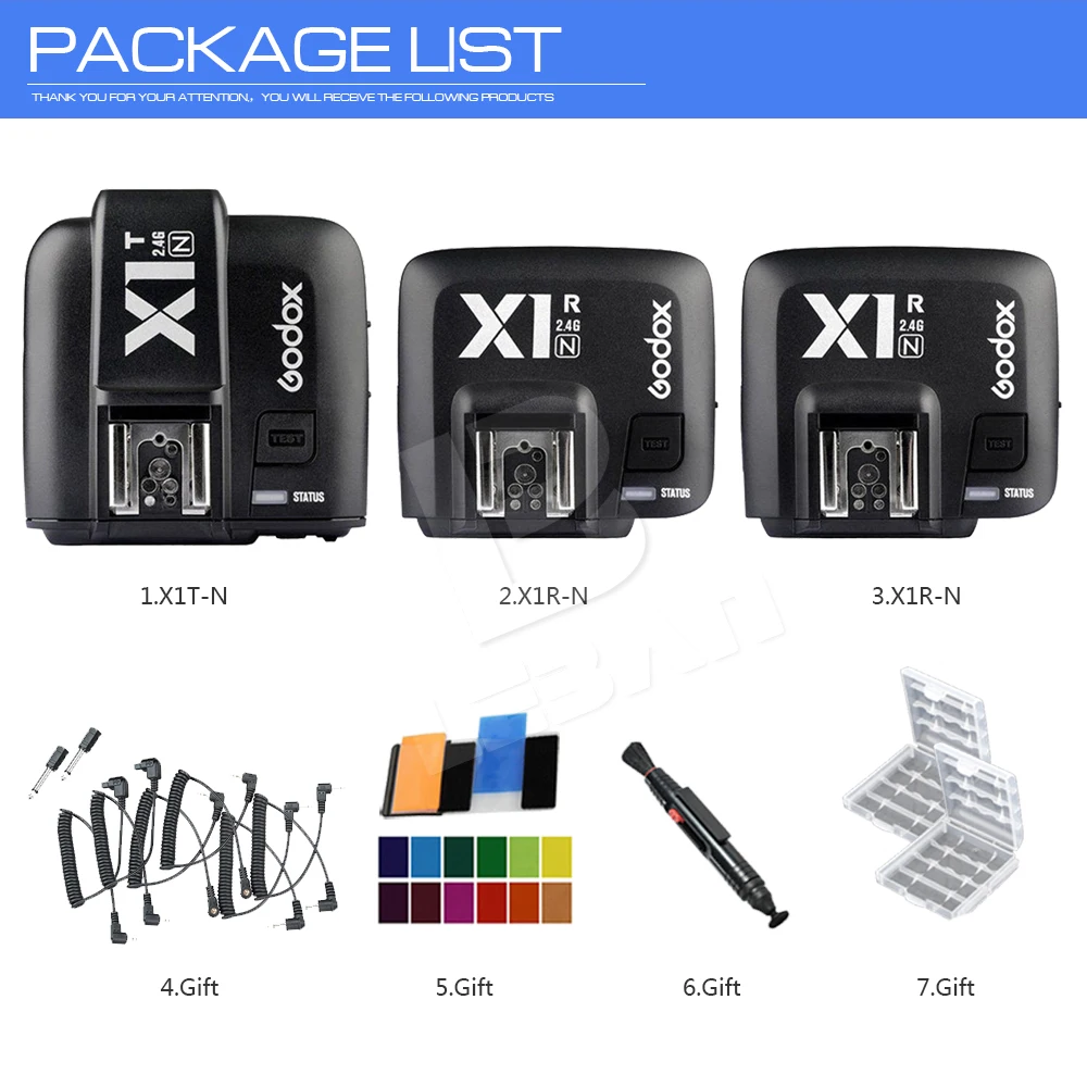 Беспроводной триггер вспышки Godox X1N (1X TX + 2X RX) HSS 2,4G для Nikon D800 D3X D3 D2X D2H D1H D1X D700 D300 D200 D100