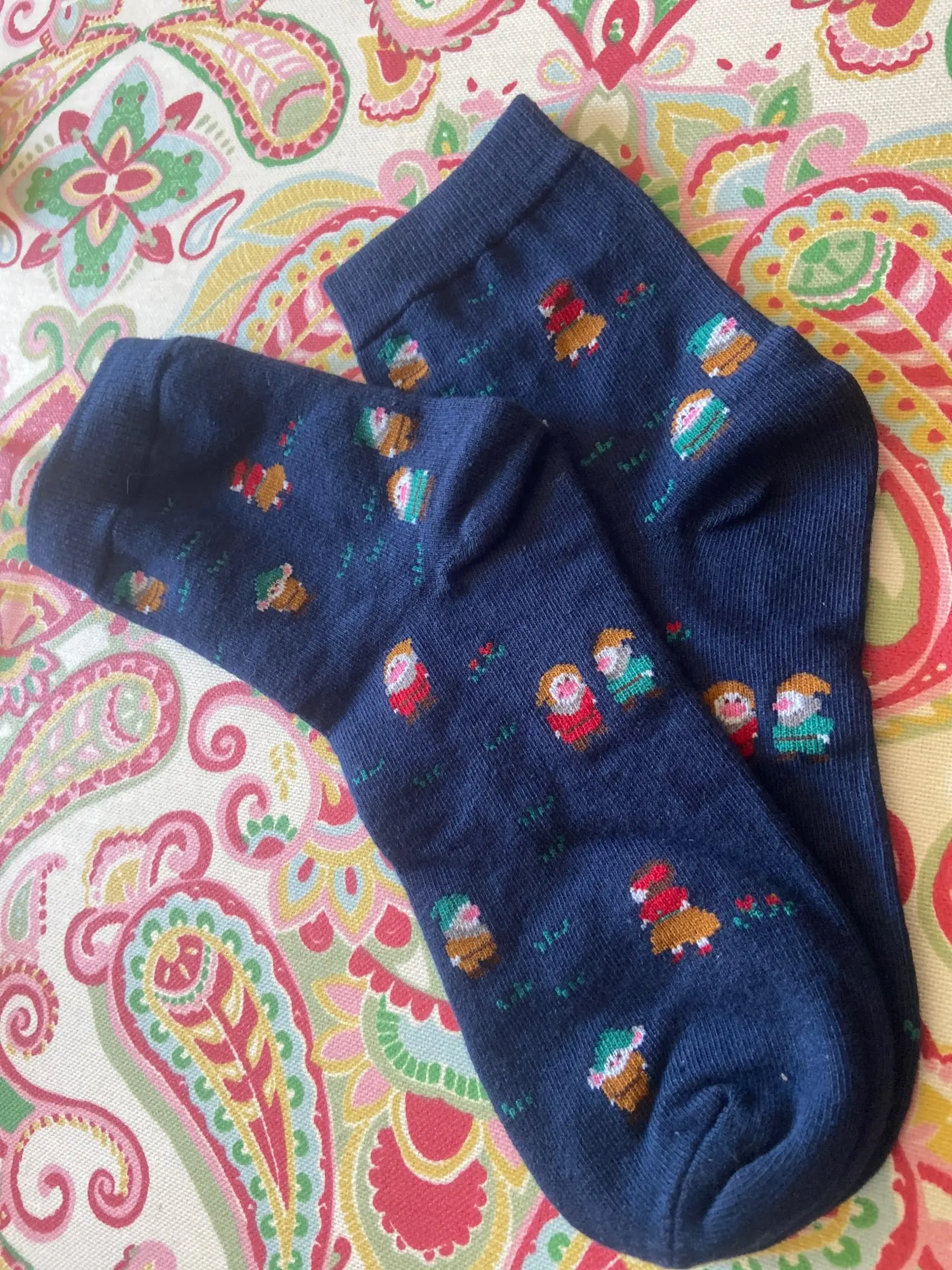 Носки женские хлопковые в стиле ретро с изображением Белоснежки и карликов