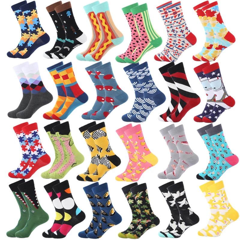 Носки женские и мужские хлопковые в стиле Харадзюку, цветки, пазлы, волнистые, в полоску, с рисунком голубей, рыбок, скейтборда, длинные под платье