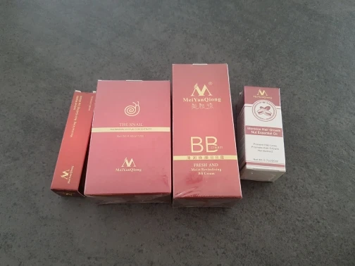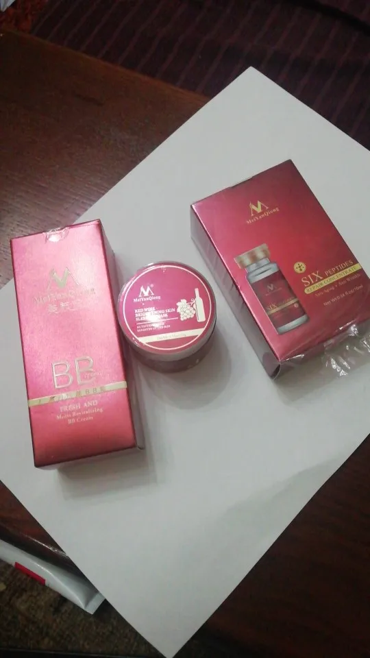 Все пришло целое,хорошо упаковано. Ранее пробовала косметику этого магазина и мне понравилось. Думаю и в этот раз останусь довольна. Золотая эссенция с маленькими блестками.Клубничная маска приятная волосы не выдирает.винную маску ещё не пробовала,бб крем плотный думаю его нужно с чем то мешать (чисто по мне)