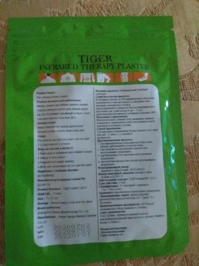Отличный пластырь, греет и реально работает. Можно носить один пластырь до двух дней. В зип-пакете 10 штук, срок годности 2 года. На самом пакете есть информация на английском и русском языках. В этом же пакете удобно и хранить. Пахнут пластыри китайскими травами. Спасибо.