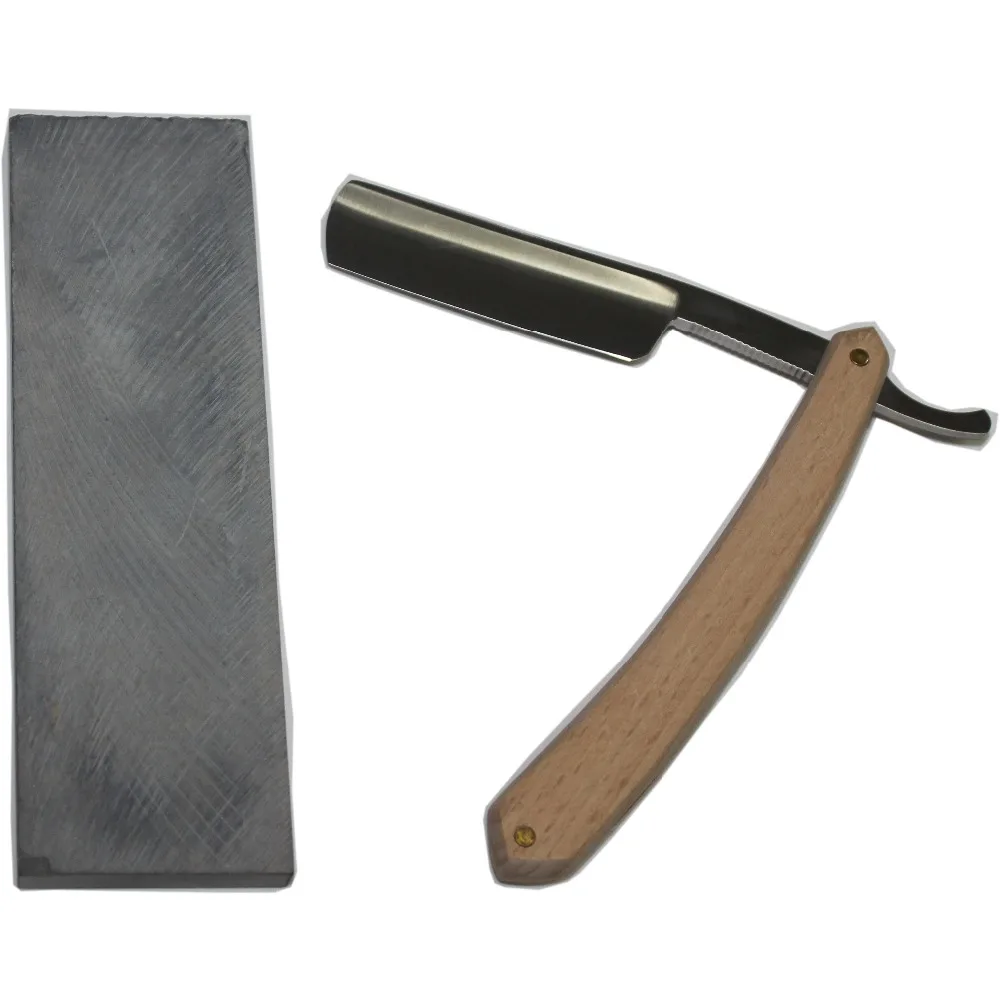 1 Бритва + 1 шлифовальный камень, новинка, Мужская бритва, прямая Бритва для парикмахерской, бритва с вырезом, буковая деревянная ручка, стальное бритвенное лезвие