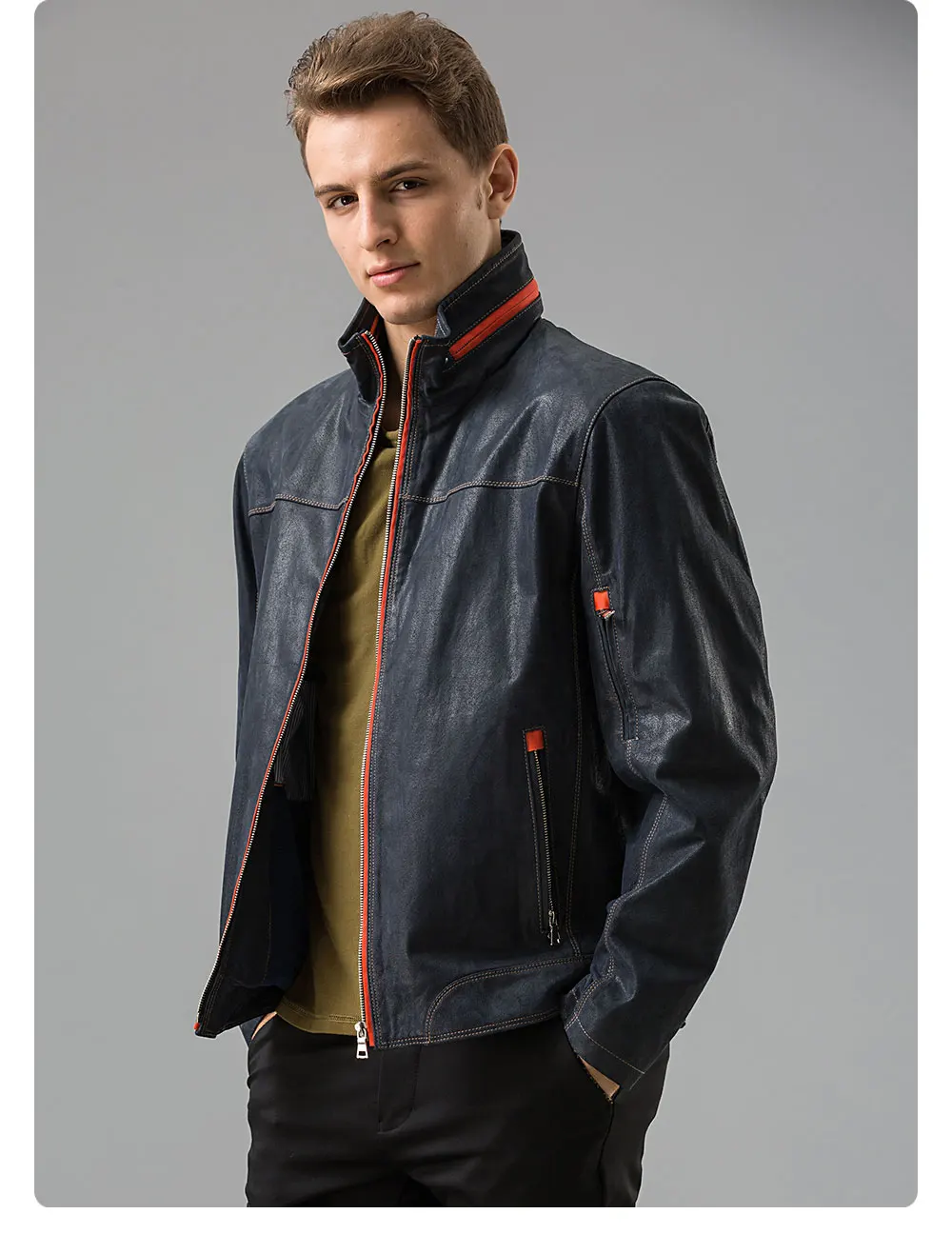 Kожаная куртка мужская из свиной шкуры, жакеты из натуральной кожи,...