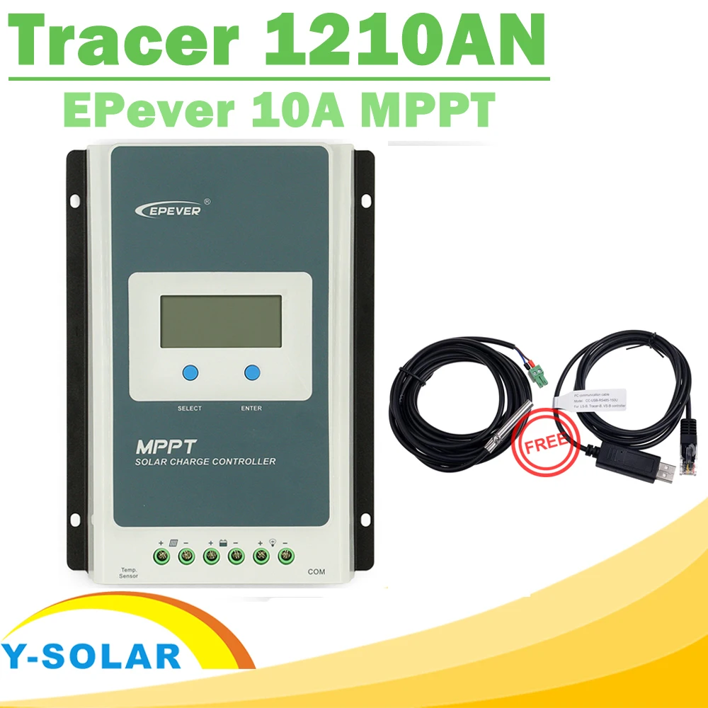 Контроллер солнечной батареи EPsolar MPPT 1210AN, 10 А, 12 В, 24 В, ЖК-дисплей, контроллер заряда солнечной панели, регулятор батареи с двумя бесплатными кабелями