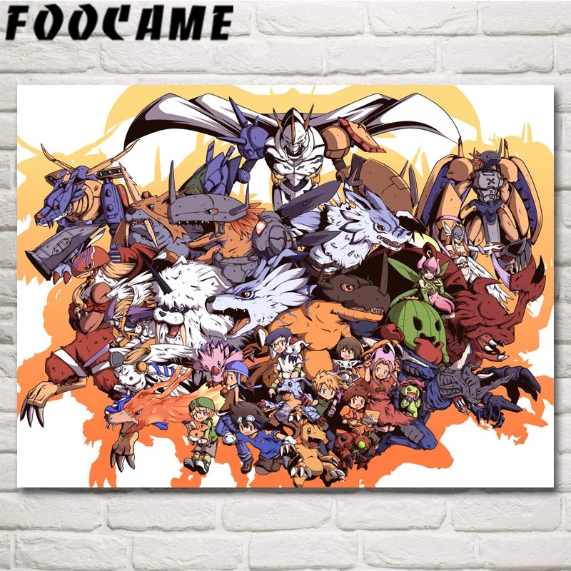 Картины шелковые FOOCAME Digimon, аниме Приключения, для гостиной, настенные плакаты и принты, домашний декор