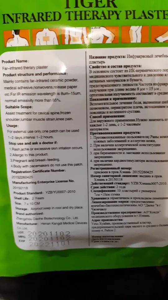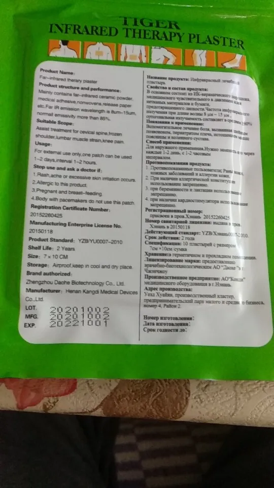 Заказ долго доставлялся по России, но лечебные свойства пластыря порадовали.