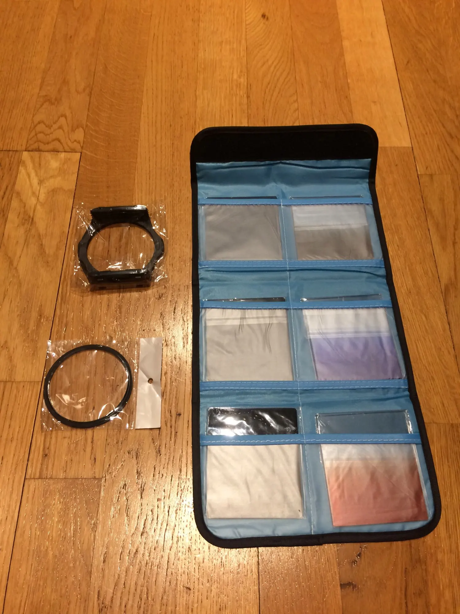 Соответствует описанию. Сначала хорошее качество .. Простая сборка кольца в держателе фильтра, что позволяет свободно вращать узел после установки на объектив. Фильтры обеспечивают полную прозрачность, без видимых дефектов. При доставке каждый фильтр находится в отдельном целлофановом мешке и хранится в отсеке футляра для переноски. Быстрый тест с синим градиентом и 2x дает удовлетворение. Быстрая доставка (12 дней).