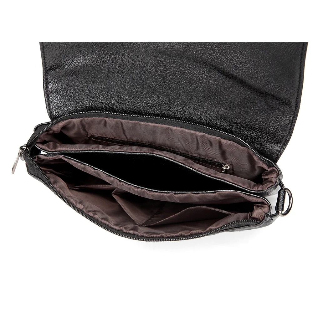 Как описано, достаточно вещей, подходящих для вашего размера, 3 закрытых отделения на молнии. Длинный и короткий ремешок. Очень мило!