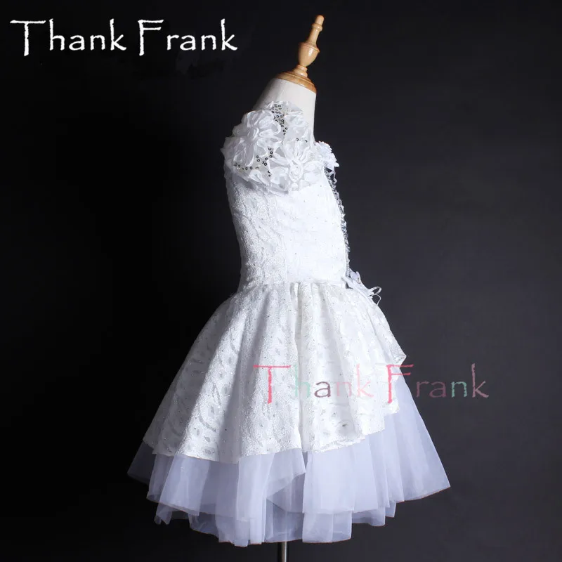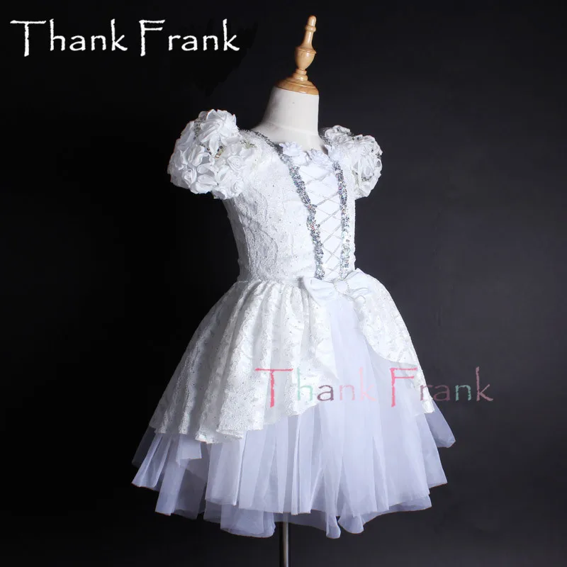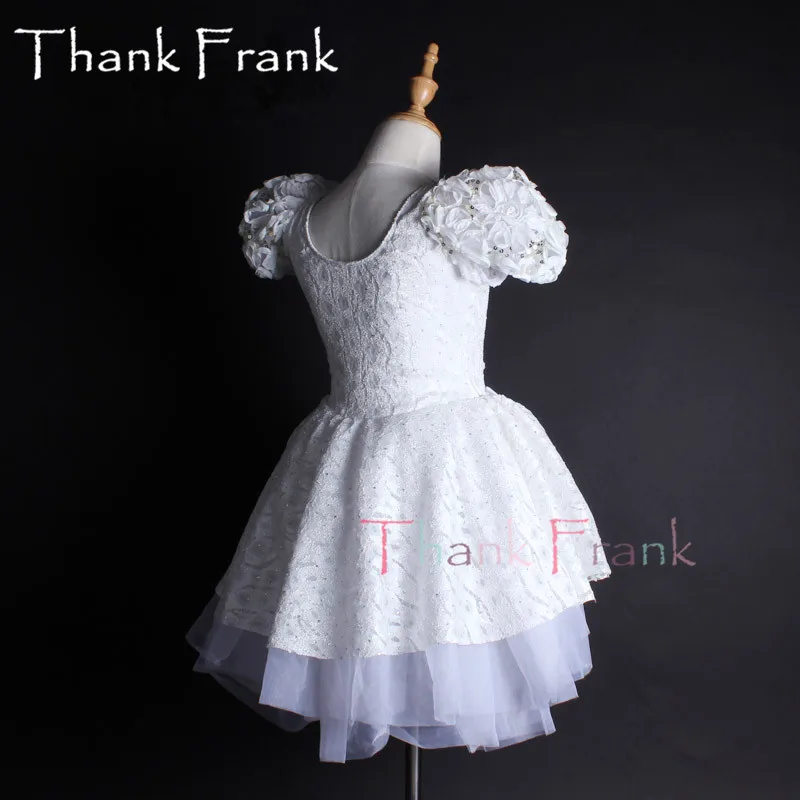 Белое Кружевное профессиональное балетное платье-пачка с пышными рукавами; Детский танцевальный костюм для взрослых; Поддержка танцев; C101