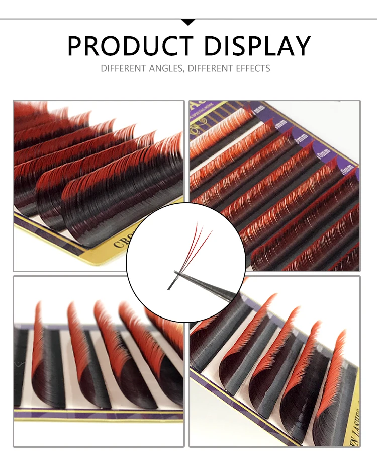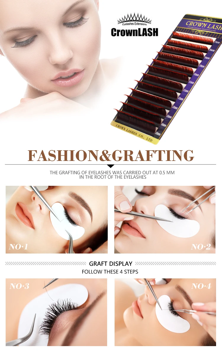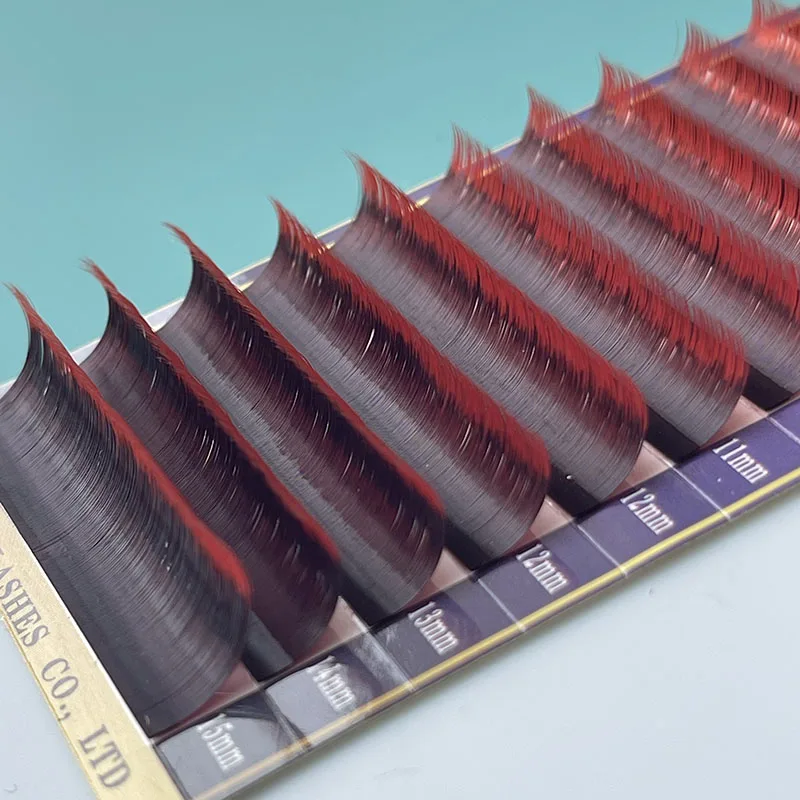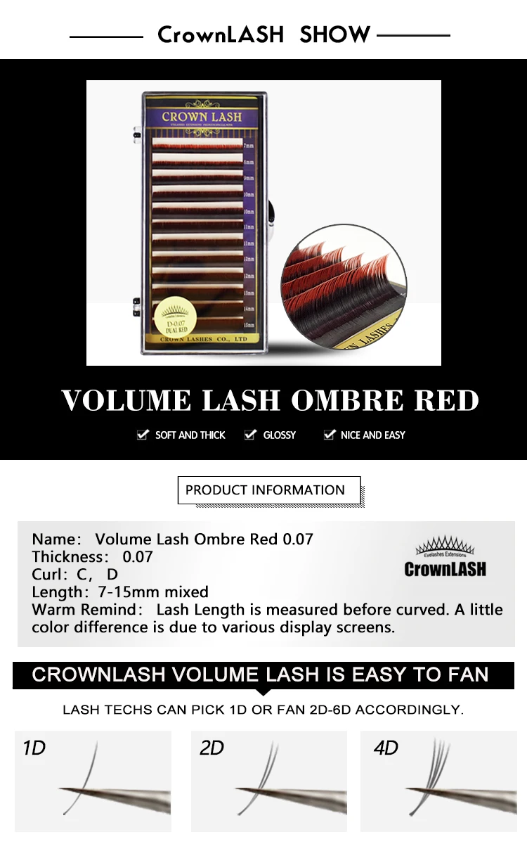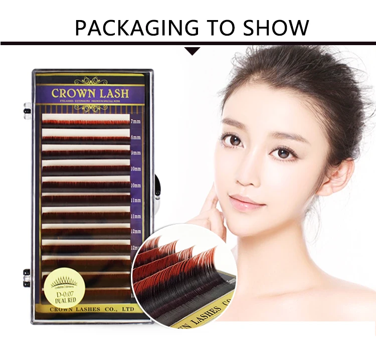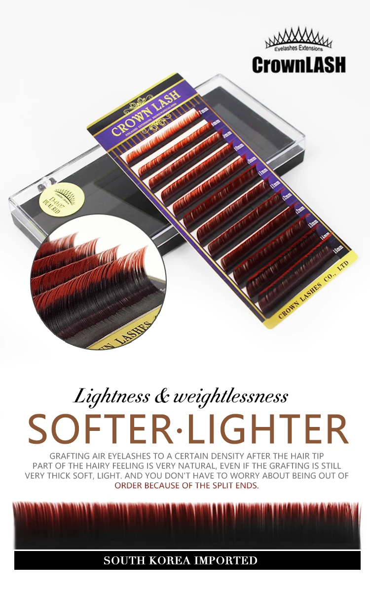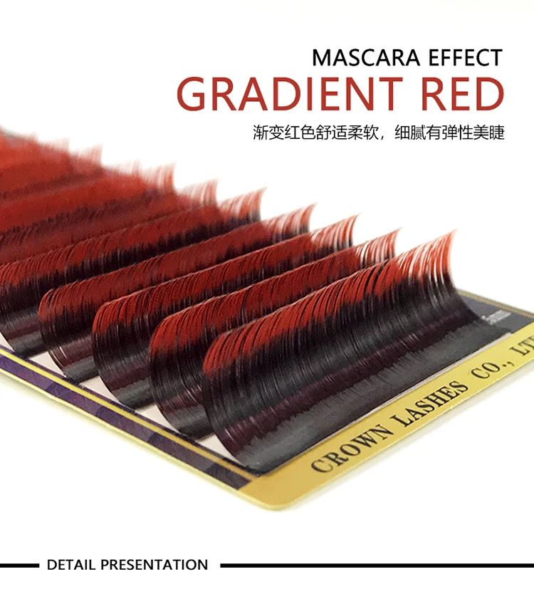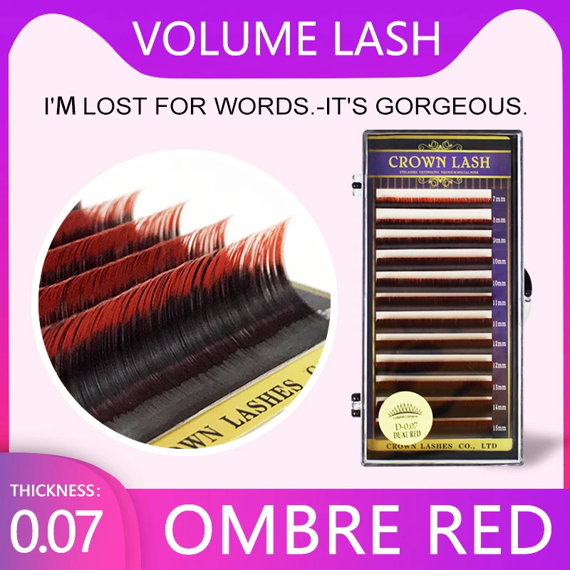 CrownLASH Ombre Red B C D-0.07 7-15 мм двухцветная русская волна наращивание ресниц 2 тона высокое качество