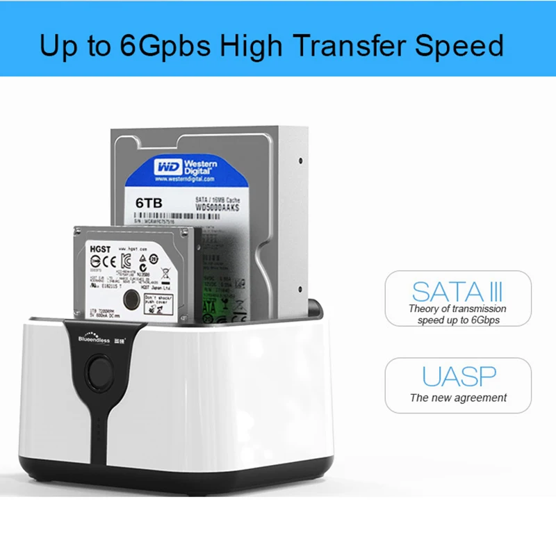 Док-станция Blueendless SATA поддерживает прямую установку настольных двух жестких дисков SATA 2,5 "/3,5". Это безкорпусное решение, которое делает замену жестких дисков проще, чем когда-либо прежде. Кроме того, теперь вы можете воспользоваться скоростью облегчения USB 3,0 для быстрой передачи файлов до 5 Гбит/с! Подключите к компьютеру любой жесткий диск 2,5 "/3,5" Serial ATA (SATA) или SATA II через доступный порт USB 3,0 на рабочем столе или ноутбуке.