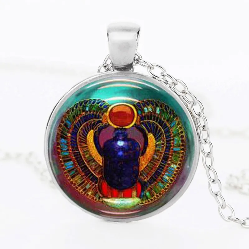 Женское Ожерелье со спиральными кристаллами, мужское ожерелье с кулоном в виде египетского скалаба, бронзовое, серебряное ожерелье с цепочкой, эффектные ожерелья