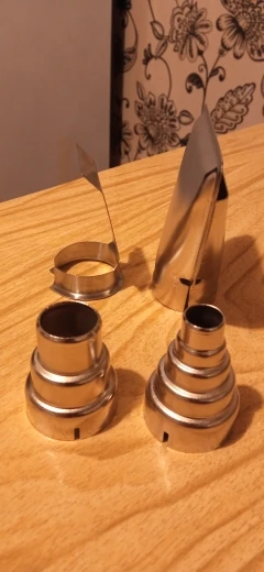 Насадки немного малы и не могут быть помещены в пасть теплового пистолета. Мне придется расширить их, чтобы они могли адаптироваться. Не стоит покупать эти насадки.