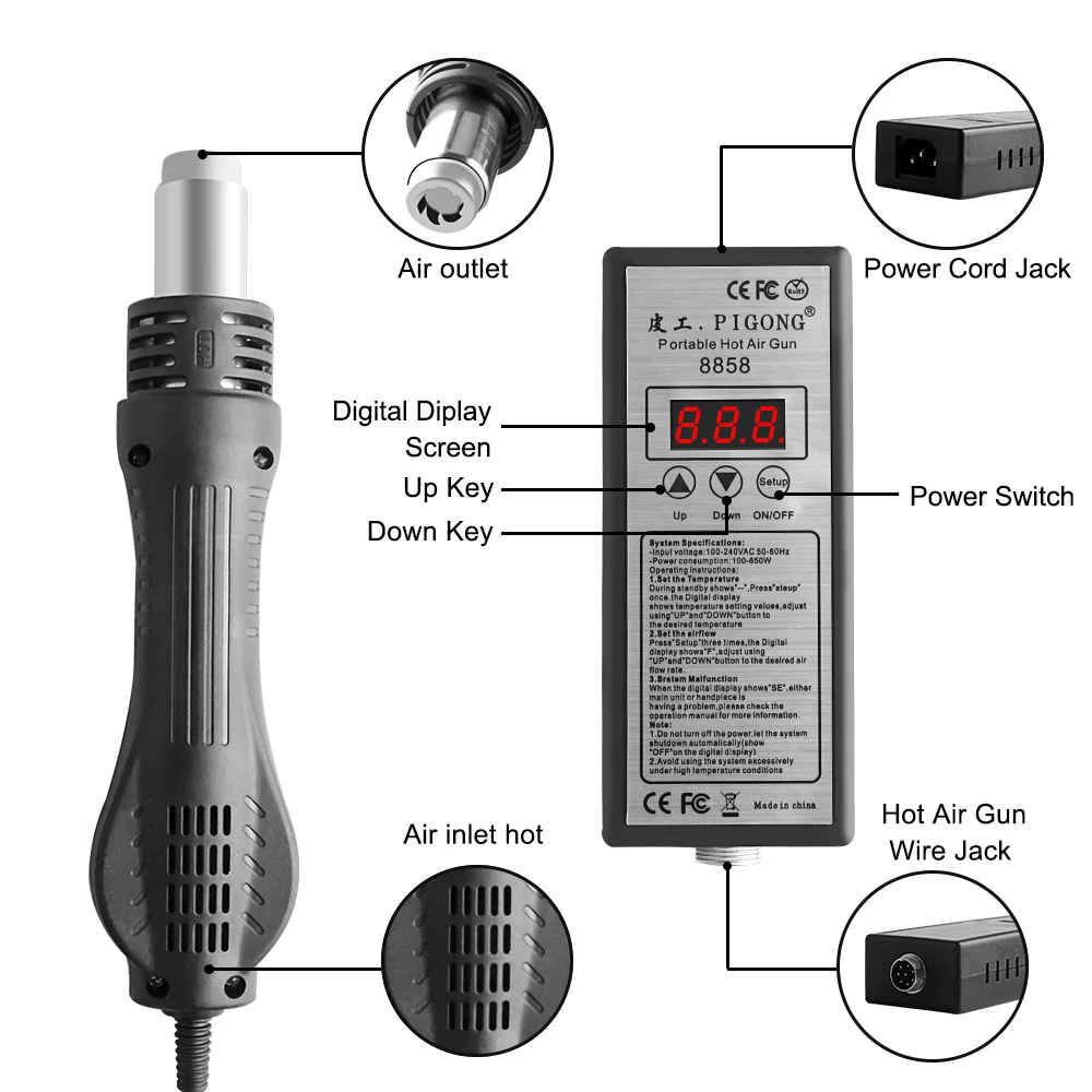 220В 110В 8858 чий ный пистолет BGA паяльная станция чий х Воздуходувка с паяльником сварочный инст