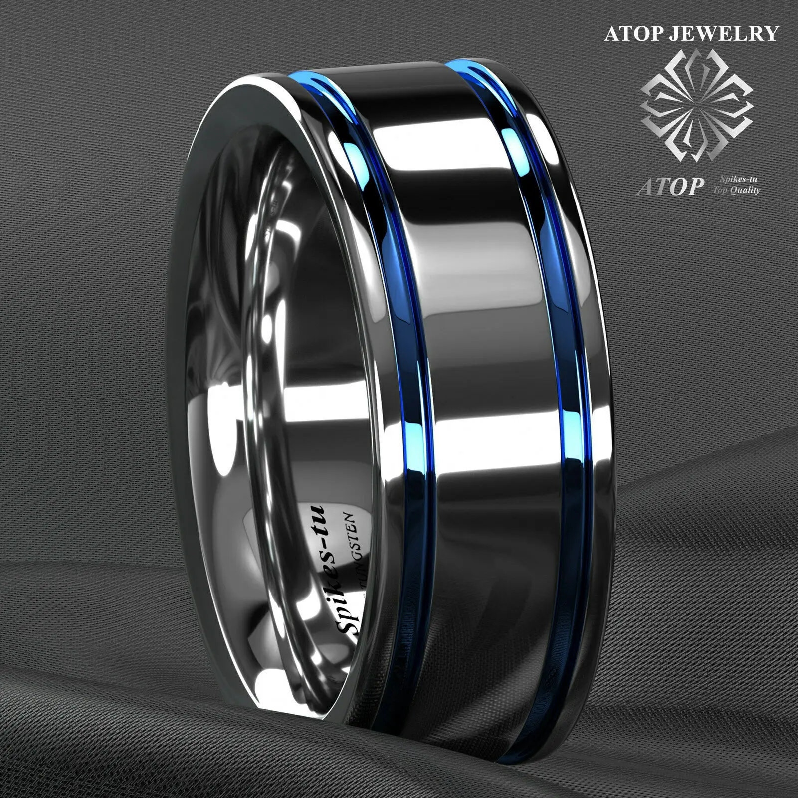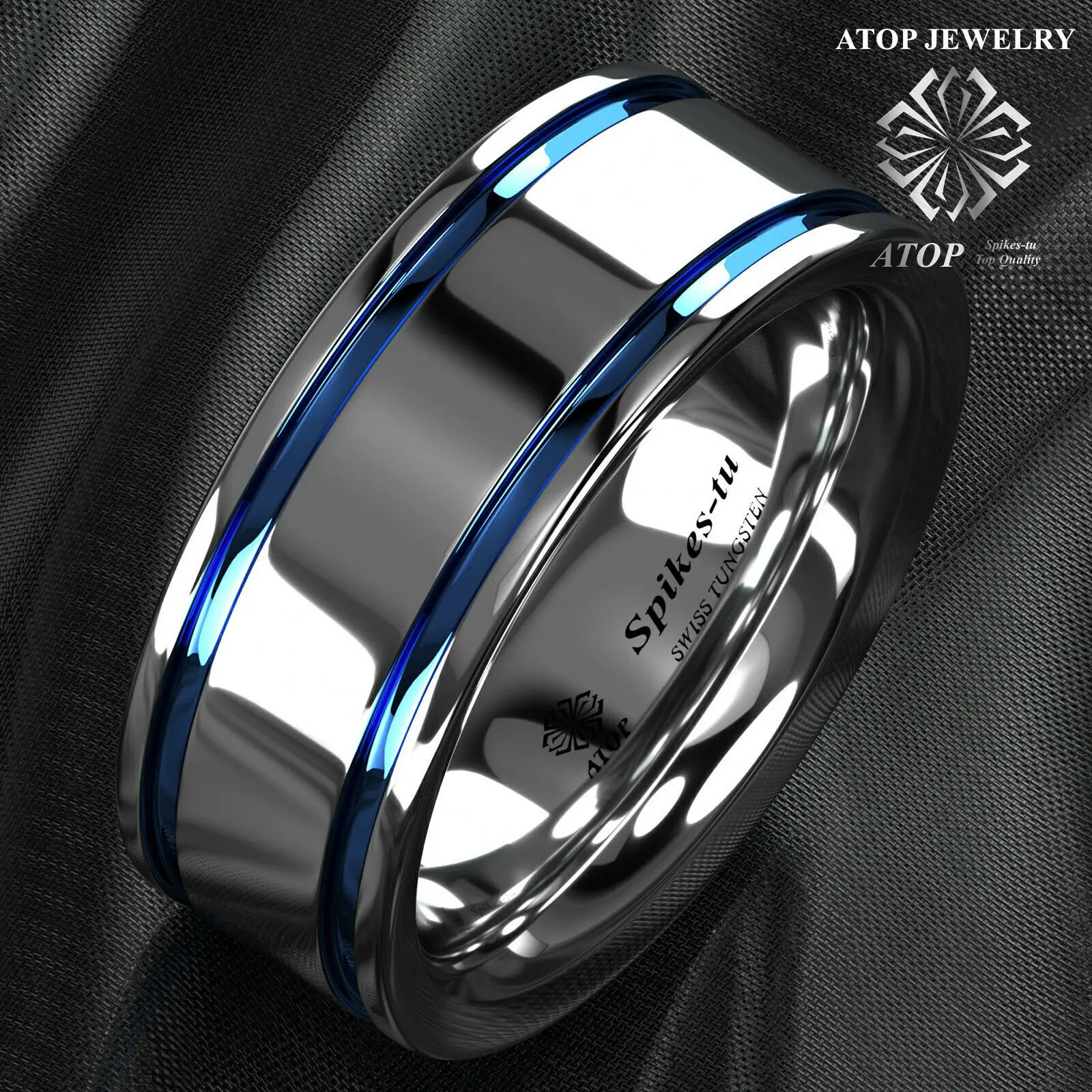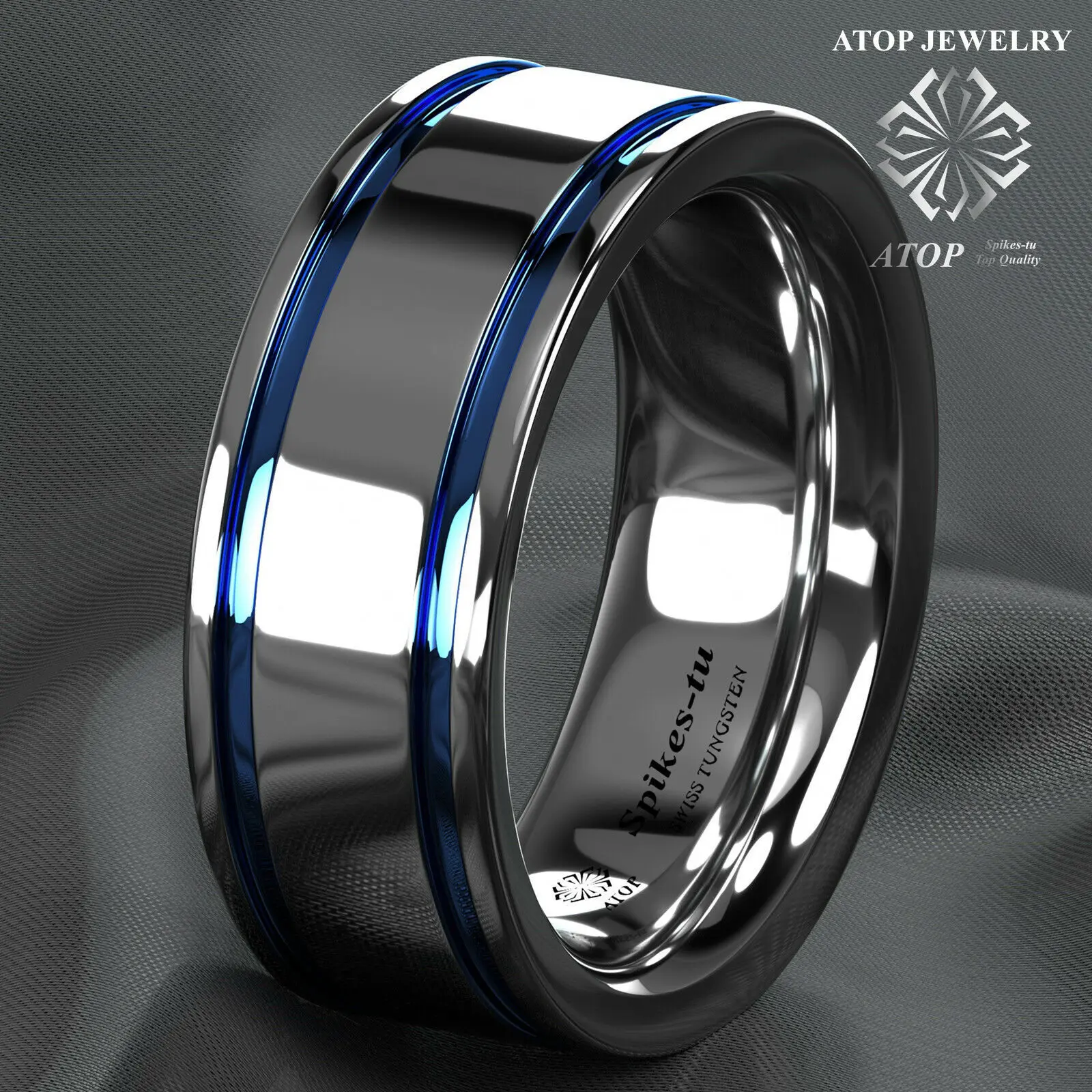 Мужское кольцо из карбида вольфрама 8 мм, обручальное кольцо с двумя синими полосками, удобное кольцо, бесплатная доставка